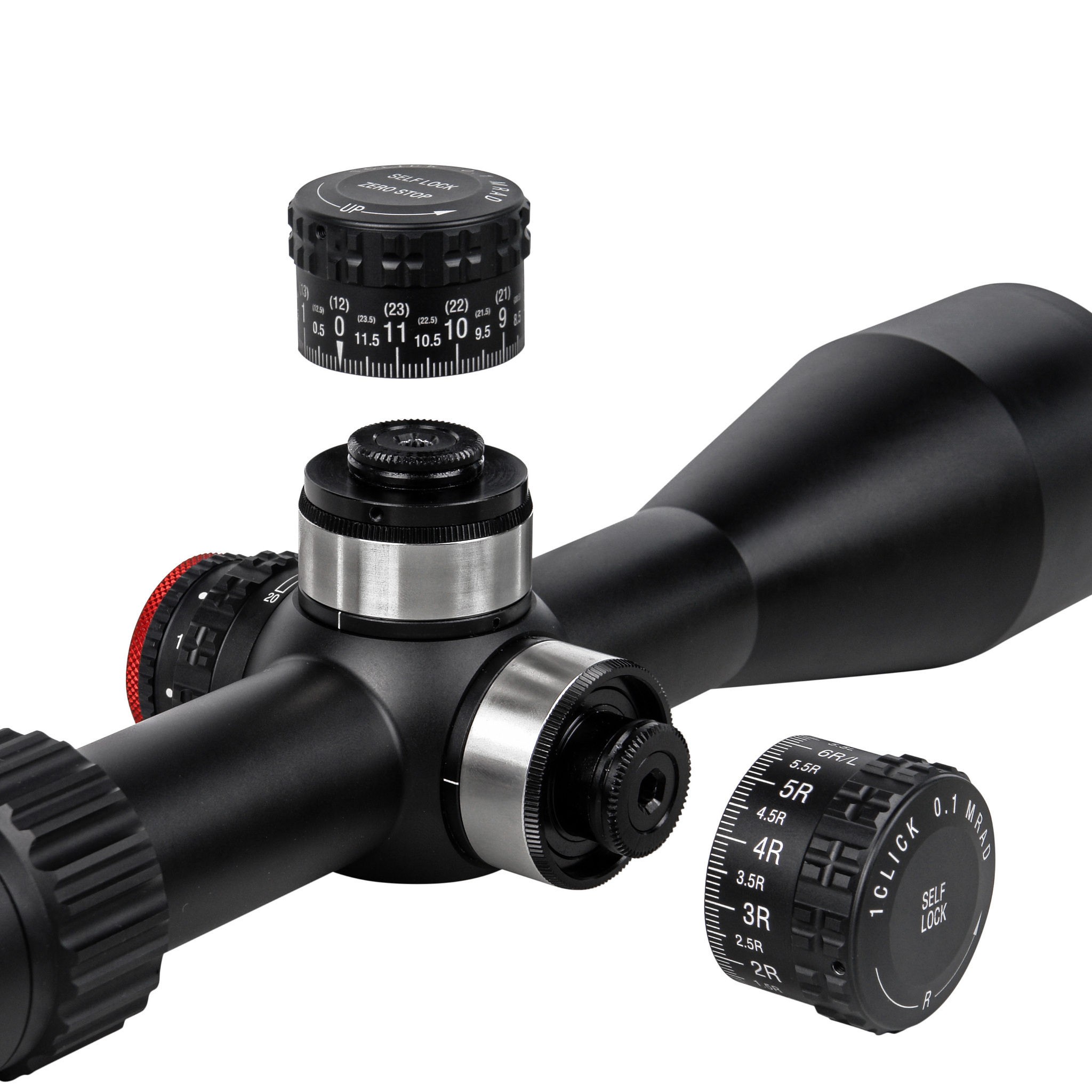 Шкалы механизма ввода поправок отградуированы в MRAD, цена деления 1 клика - 0,1 MRAD. Соответственно поворот шкалы на 1 клик перемещает на 1 см прицельную марку на мишени, удаленной на 100 м.