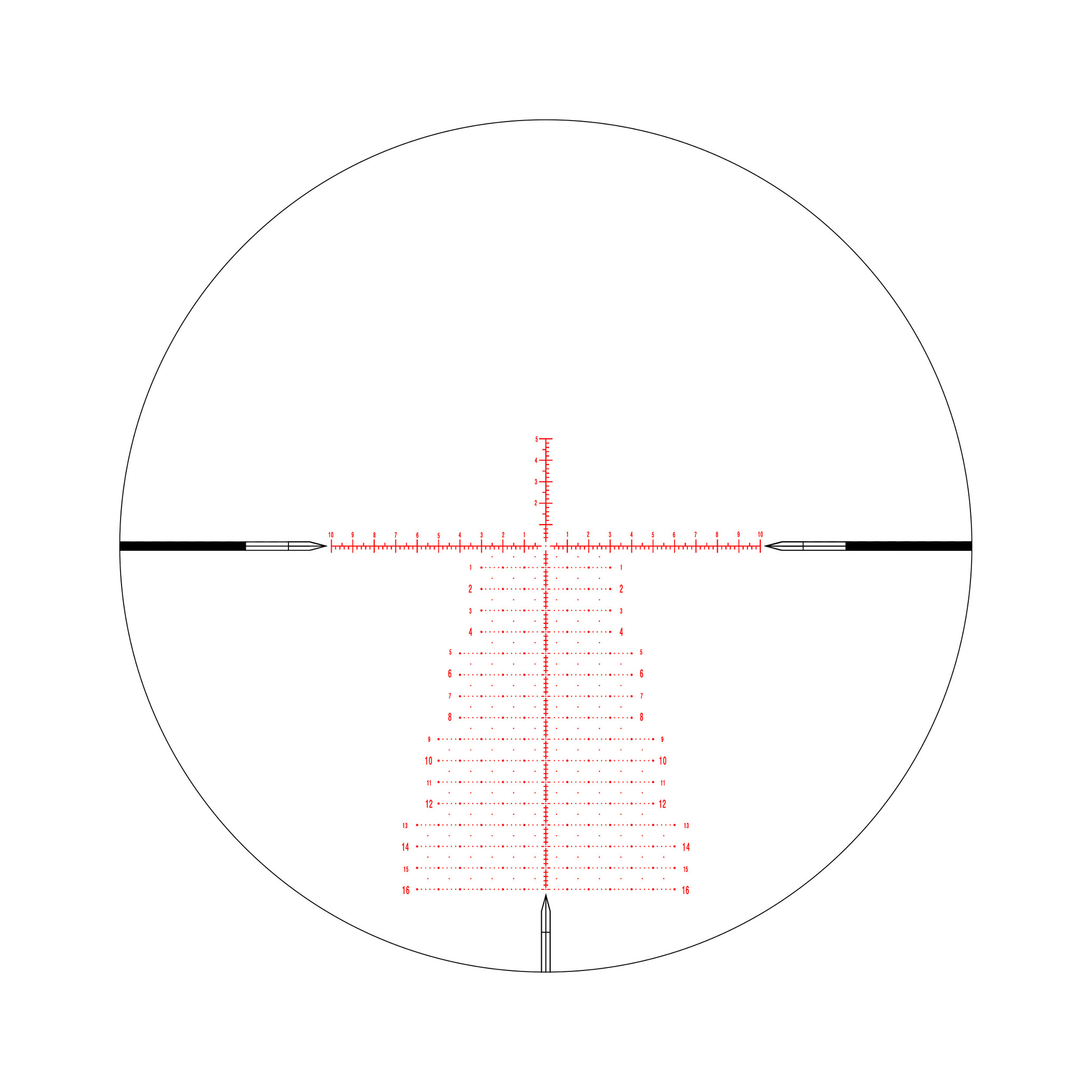 TR3 имеет центральную точку для точного прицеливания по центру, в то время как основные линии выполнены в виде штрихов в MIL. Каждый целый миллирадиан пронумерован для быстрого ориентирования даже в стрессовых условиях.