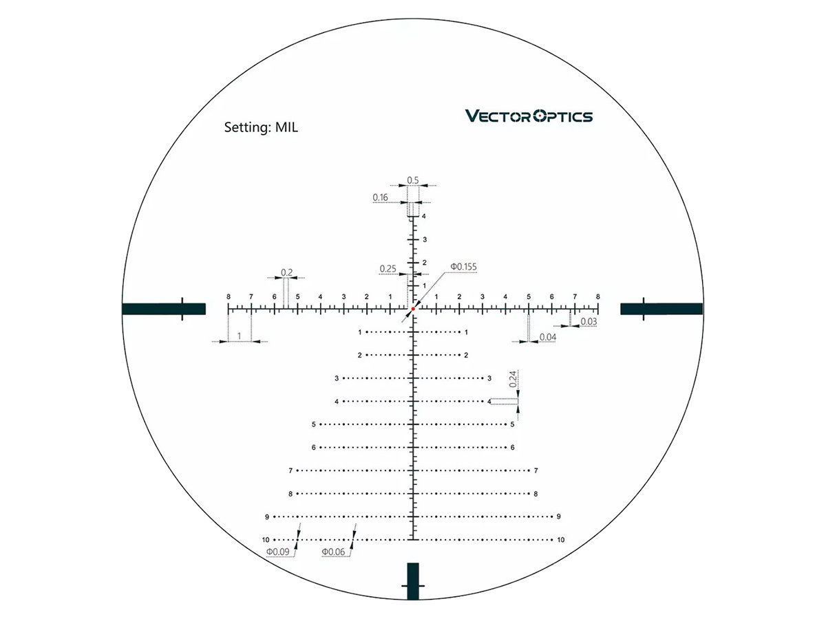 - Сетка баллистического типа VCT-34FFP расположена в 1-ой фокальной плоскости. Изменение масштаба прицельной марки пропорциональной кратности обеспечивает повышенную точность стрельбы на предельных для охотничьего прицела дистанциях.