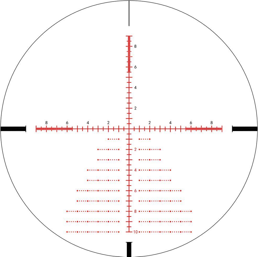 - Первая фокальная плоскость прицельной сетки - прицельная сетка не изменяется при увеличении цели, дальности цели и использовании удерживающих устройств при любом увеличении.