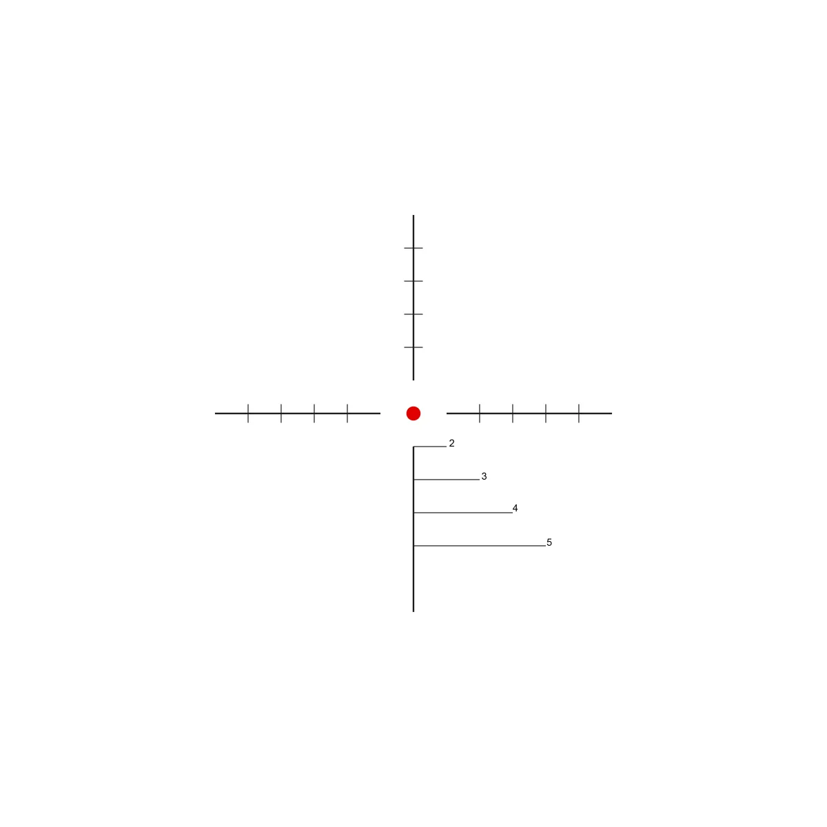 Пользователю предоставлен выбор из 5 видов тактических сеток в 5 цветах (белый, черный, красный, зеленый, синий). В зависимости от личных предпочтений и условий наблюдений можно подобрать наиболее подходящий вариант.