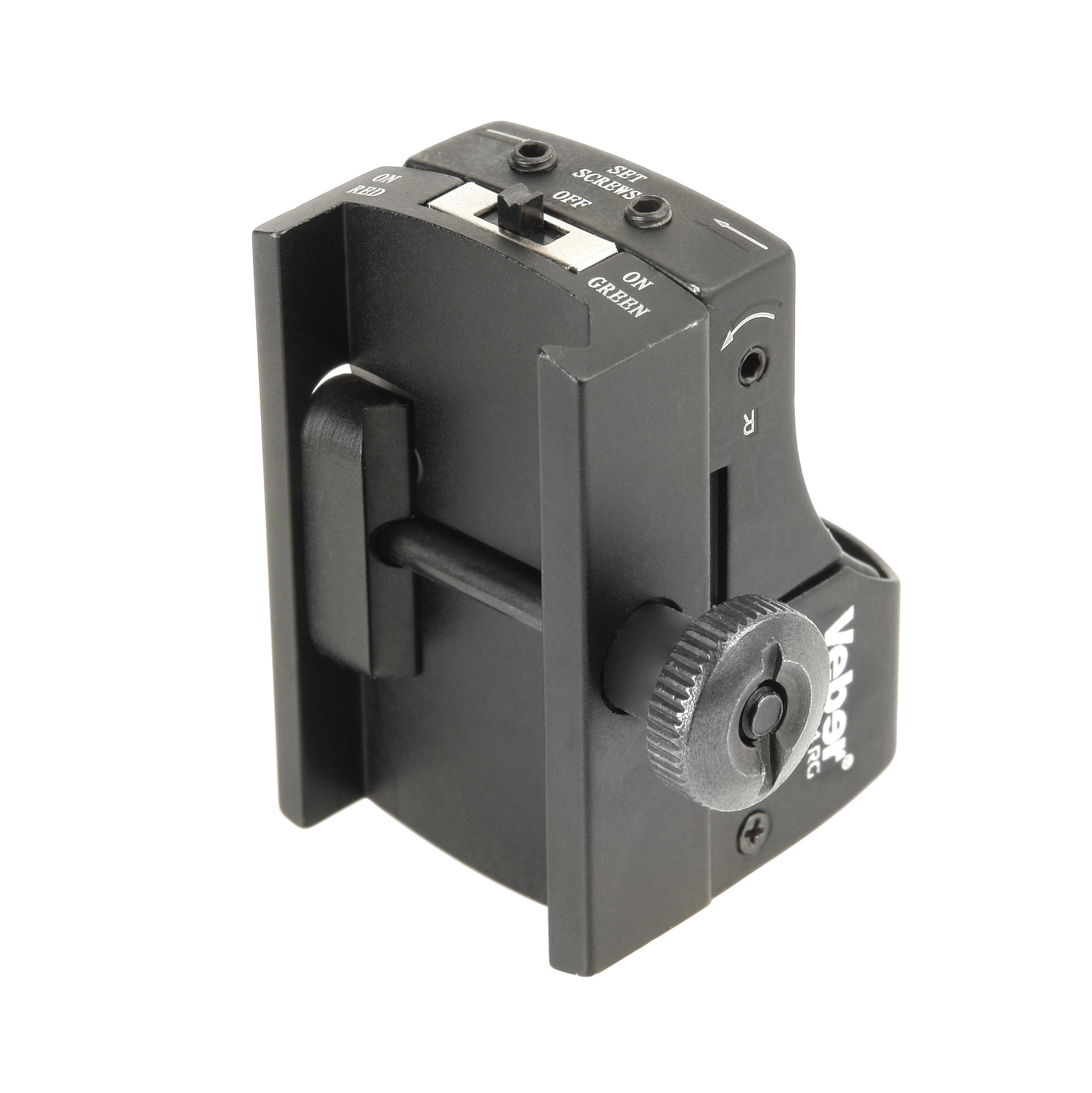 Переключатель включения и выбора цвета прицельной марки находится на основании корпуса в зоне обзора стрелка, что позволит быстро сменить цвет прицельной марки при необходимости.