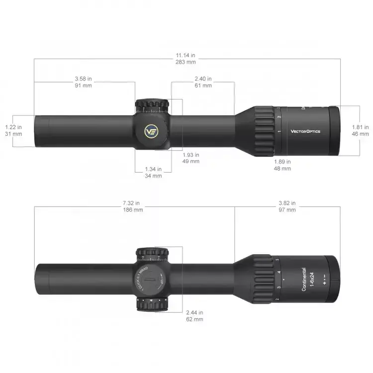 Vector Optics Continental Tactical x6 1-6x24i Fiber (SCOC-44) с оптоволоконной сеткой VEC-FDR — оптический прицел профессионального уровня для 3-Gun соревнований, спортивной и тактической стрельбы на дистанциях до 300 м.