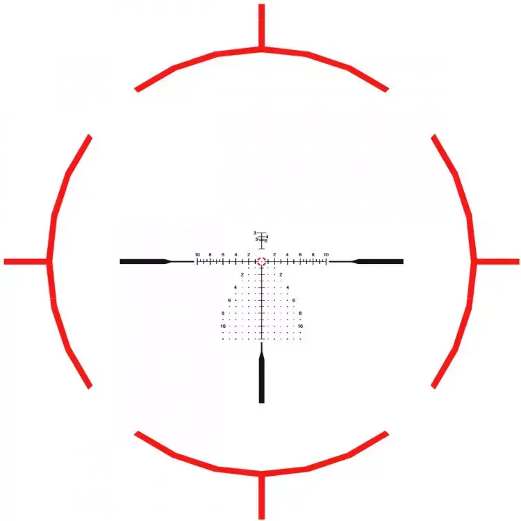 Увеличение 2...12x. При 2x — отличная обзорность (18 м/100 м) и быстрый поиск на малых дистанциях. При 12x — увеличенная дальность стрельбы, высокий уровень детализации и точная стрельба по месту.