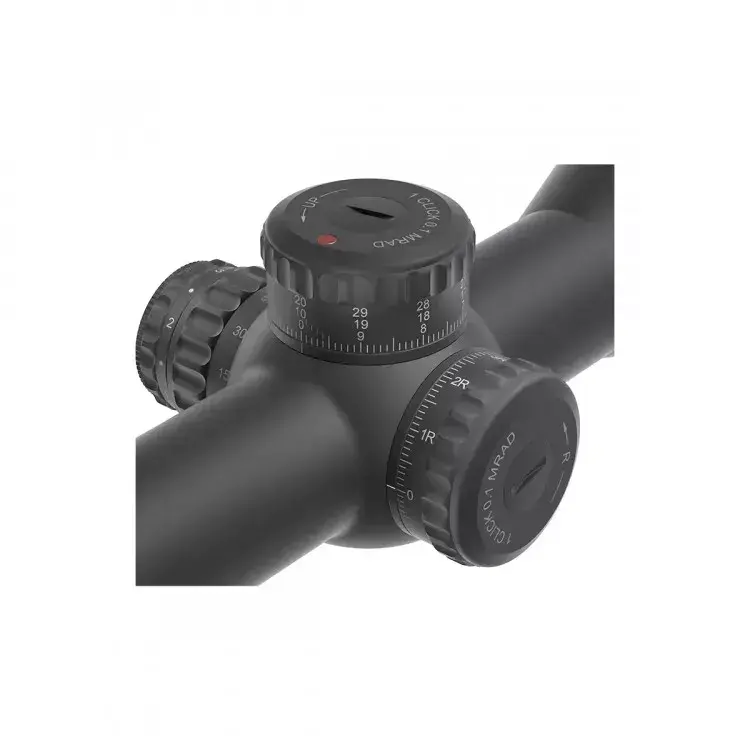 Пристрелочные барабаны невысокие, с блокировкой от случайного смещения и чёткими, слышимыми кликами в 1/10 Mil. Диапазон выверки больше обычного — 55 Mil благодаря 34-мм корпусу. Вертикальный барабан оснащён кнопкой-счётчиком полных оборотов и системой Zero Stop (Зеро Стоп), которая позволяет быстро вернуться к «нулевой» отметке без ухода в отрицательные поправки. В комплекте есть и стандартный барабан без Zero Stop.