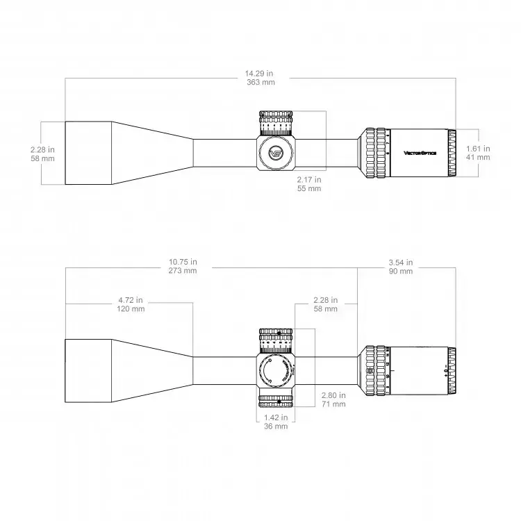 Высокая прочность. Классический форм-фактор. От моделей 6-24x50 Sentinel / Taurus прицел Vector Optics HUGO 6-24x50 отличается более лёгким корпусом с дюймовой трубой, увеличенным до 105 мм выносом выходного зрачка и повышенной ударной стойкостью. По заявлению производителя, эта модель рассчитана на отдачу огнестрельного оружия калибра .308 Win (до 750 G) и пружинно-поршневой пневматики.