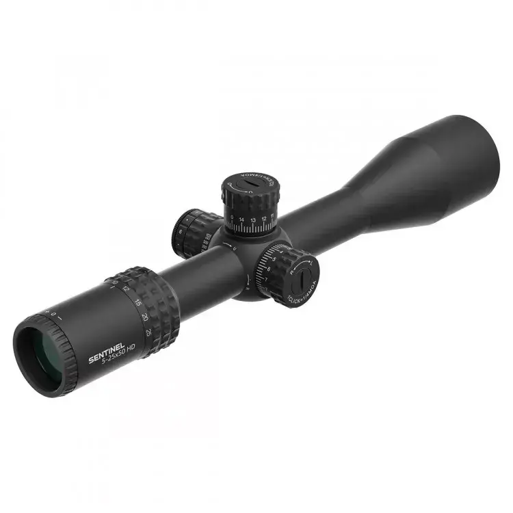 Увеличение 5...25x. Sentinel 5-25x50 HD — единственный прицел в линейке с 5-кратным зумом. Больше возможностей для наблюдений и стрельбы, шире диапазон рабочих дистанций.