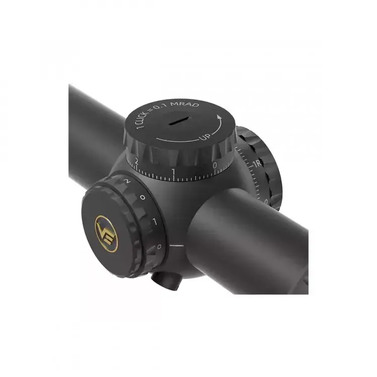 Пристрелочные барабаны — открытые, низкопрофильные, с подпружиненной блокировкой для защиты от сбоя настроек даже в жёстких условиях. Клики тактильные, с чётким ощущением каждой поправки пальцами и на слух. Цена клика — 1/10 Mil (10 мм на дистанции 100 м). Диапазон выверки — 60 Mil, что в 1,5 раза больше, чем у Taurus 1-6x24 SFP (SCOC-42). Этого запаса достаточно для пристрелки на большие дистанции и при установке на высокое крепление.