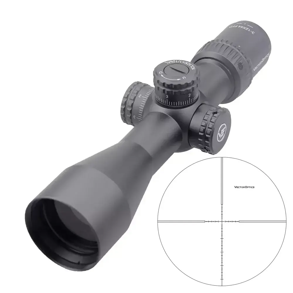 Лёгкий и компактный прицел-универсал Vector Optics Veyron 3-12x44 FFP SF с баллистической сеткой MPR-4 обеспечивает высокоточную стрельбу на малых/средних дистанциях из спортивного и охотничьего пневматического оружия с дульной энергией до 7,5 Дж. Подходит для страйкбола, охоты в горах или с вышки на крупную дичь днём и в ранних сумерках.