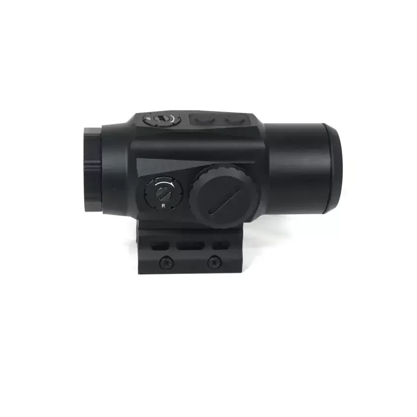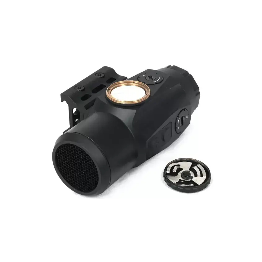 Регулировка яркости в пределах 10 уровней позволяет адаптировать видимость прицельной марки к различным условиям освещения. Восемь самых ярких режимов предназначены для использования коллиматора днем, тогда как два тусклых режима предусмотрены для совместной работы устройства с приборами ночного видения (ПНВ). Настройка интенсивности свечения выполняется с помощью кнопочного блока управления с прорезиненными выпуклыми кнопками.