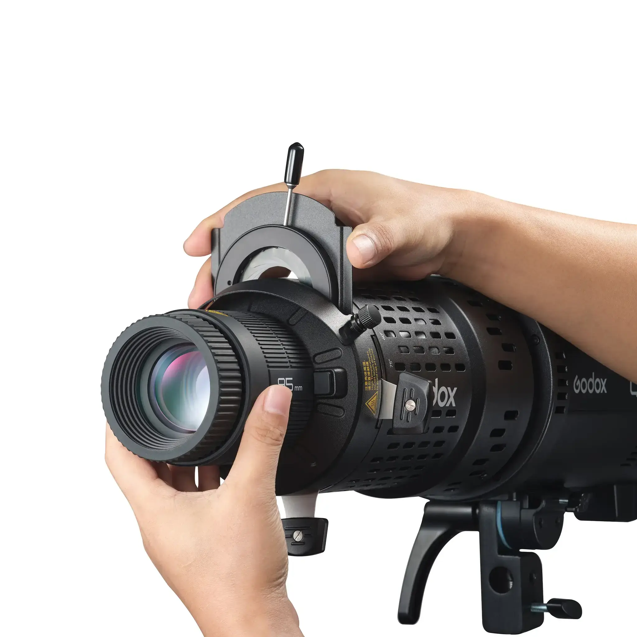 Универсальное крепление EF позволяет устанавливать линзы с креплением стандарта EF, совместимым с широким ассортиментом линз. Рекомендуется использование линз Godox для оптимальной работы оборудования.