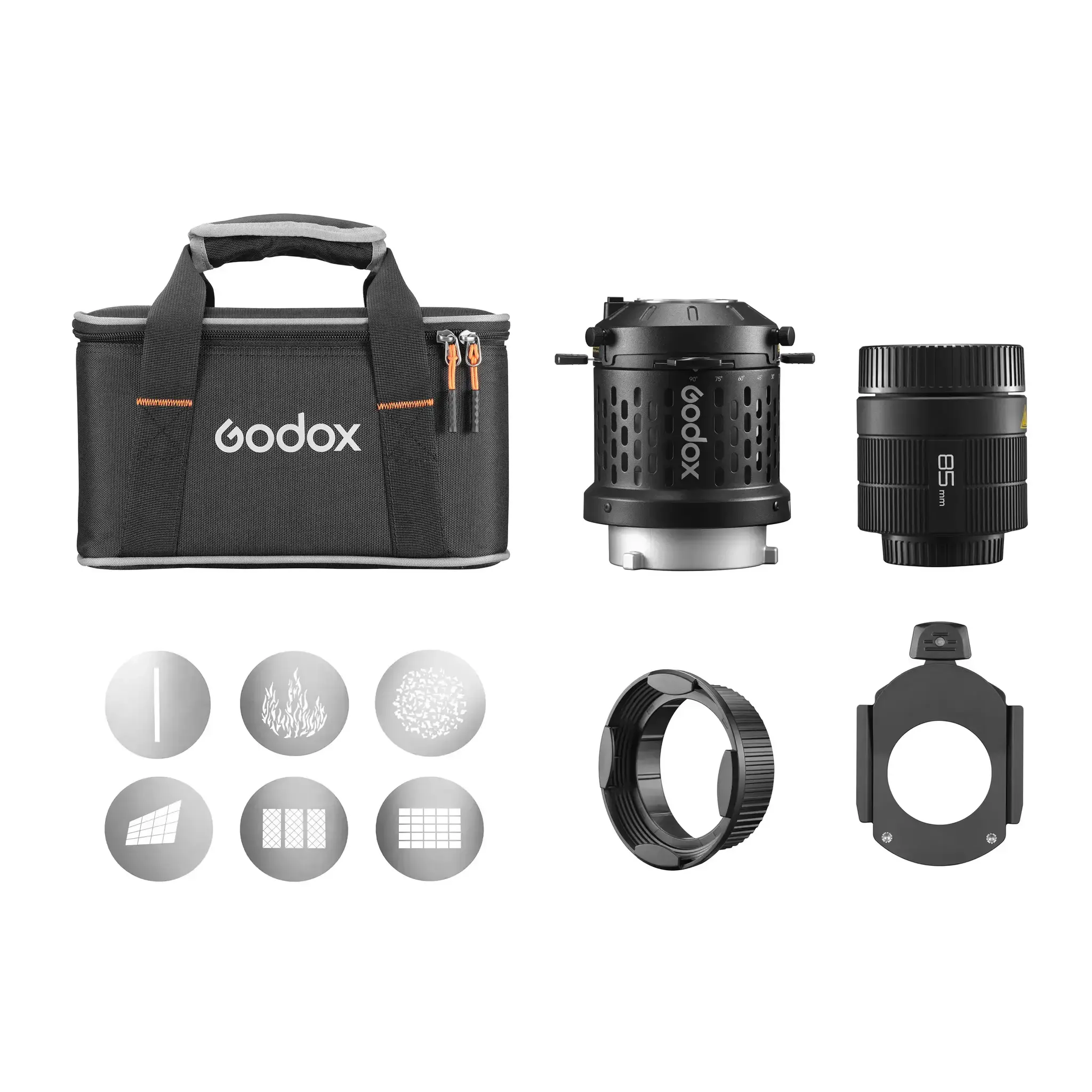 В комплект входит стандартная 85-мм линза. Дополнительно доступны три совместимые линзы (48 мм, 65 мм и 150 мм), которые можно приобрести отдельно для решения различных задач. Эти линзы также совместимы с проекционной насадкой для вспышек Godox BFP.