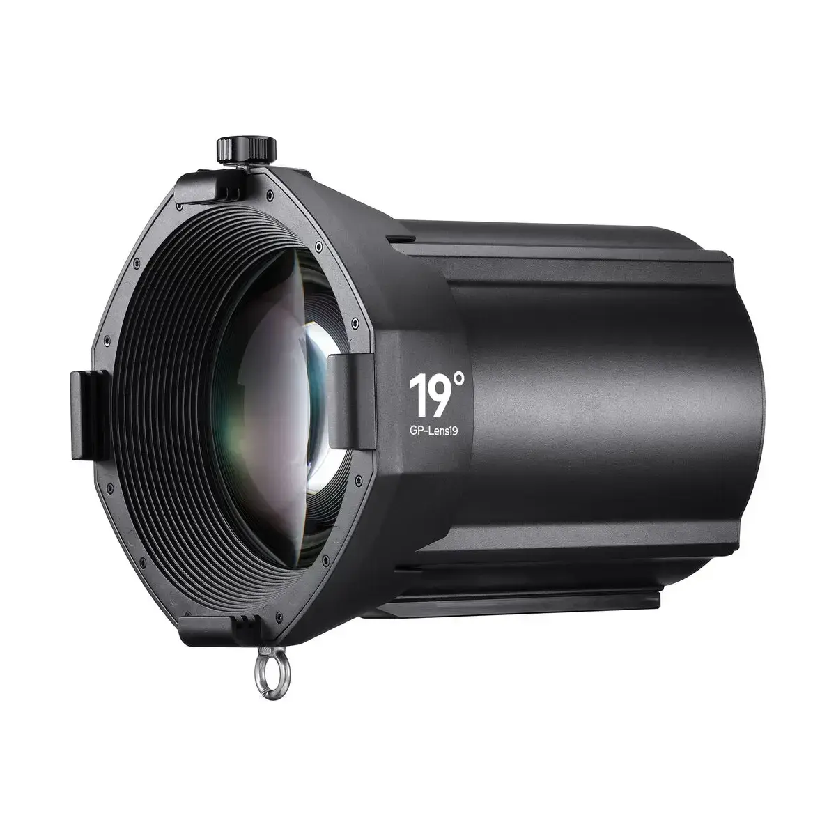 Проекционная насадка Godox Knowled GP19K с линзой 19° служит для формирования ровного, четкого и яркого светового потока с эффектом «прожекторного» света от студийных осветителей с байонетом G Mount. В комплект к насадке идут аксессуары для модификации светового потока – набор из 6 масок GOBO с держателем и сумка-кейс на колесах для транспортировки комплекта. Также дополнительно можно приобрести ирисовую диафрагму для формирования еще более узкого регулируемого пучка света.