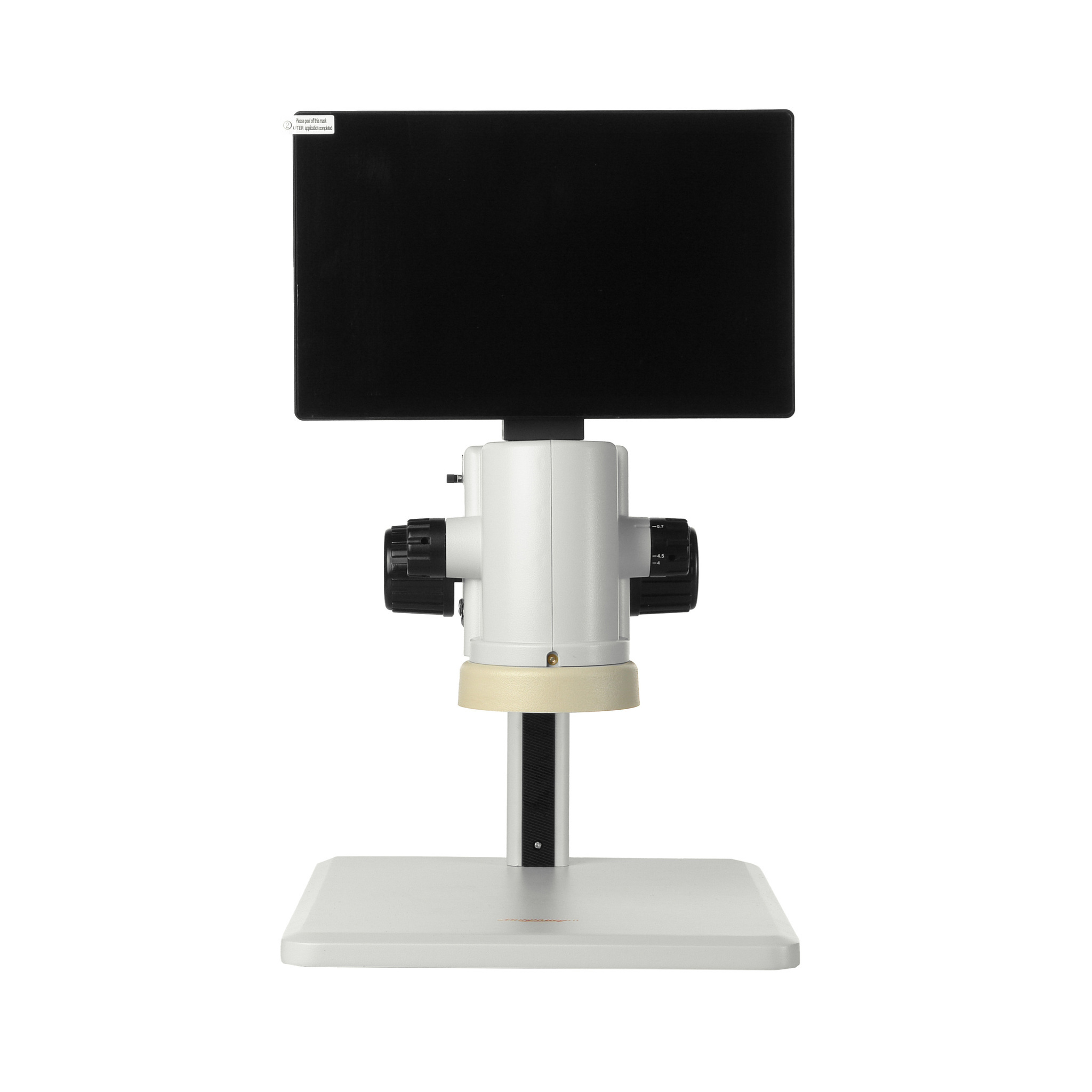 Оптическая головка микроскопа включает в себя объектив высокого разрешения с переменным увеличением от 0.7 до 4.5х. Необходимое увеличение устанавливается бесступенчато двумя рукоятками, выведенными на обе стороны головки. Для удобства пользователя рукоятки оснащены механизмом click-stop с положениями 0.7, 1.0, 1.5, 2.0, 3.0, 4.0 и 4.5.