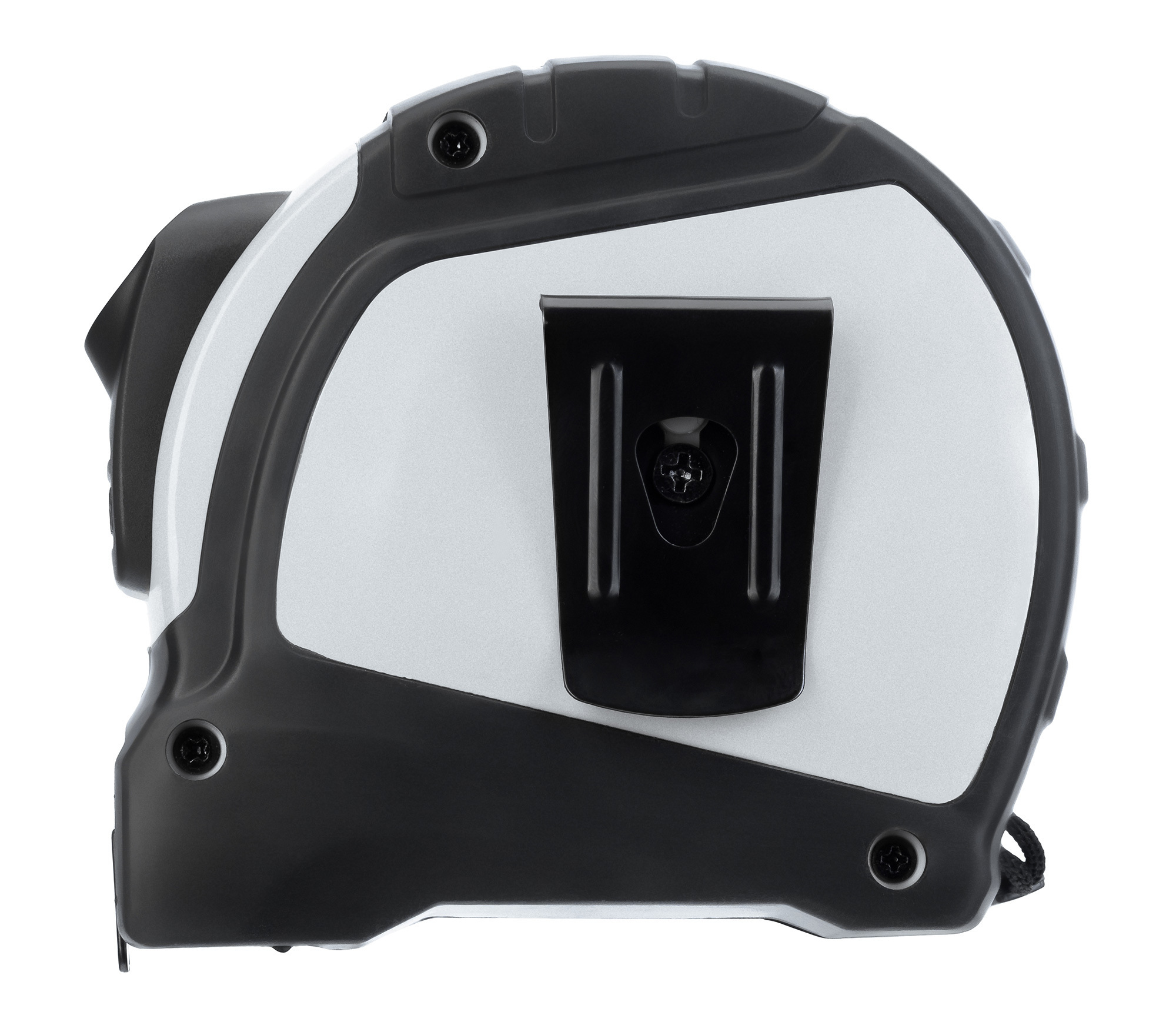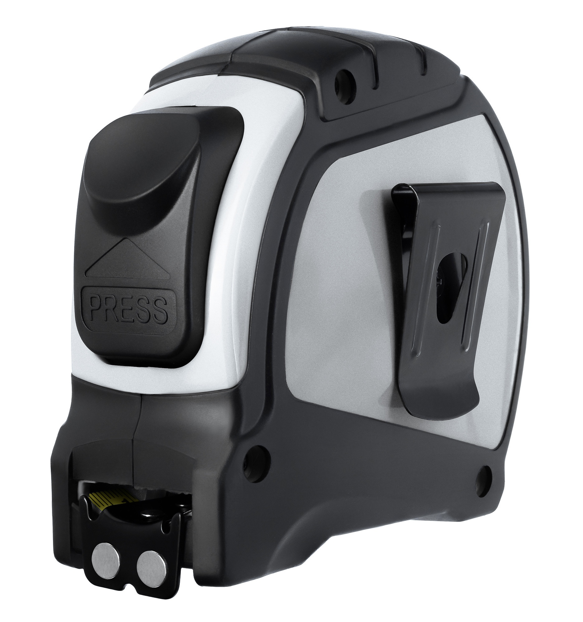 Лента шириной 25 мм и толщиной 0,15 мм устойчива к заломам и повреждениям. Магнитный наконечник-зацеп позволяет закреплять ленту на стальных поверхностях. Пластиковый обрезиненный корпус с поясным креплением обеспечивает удобство использования.
