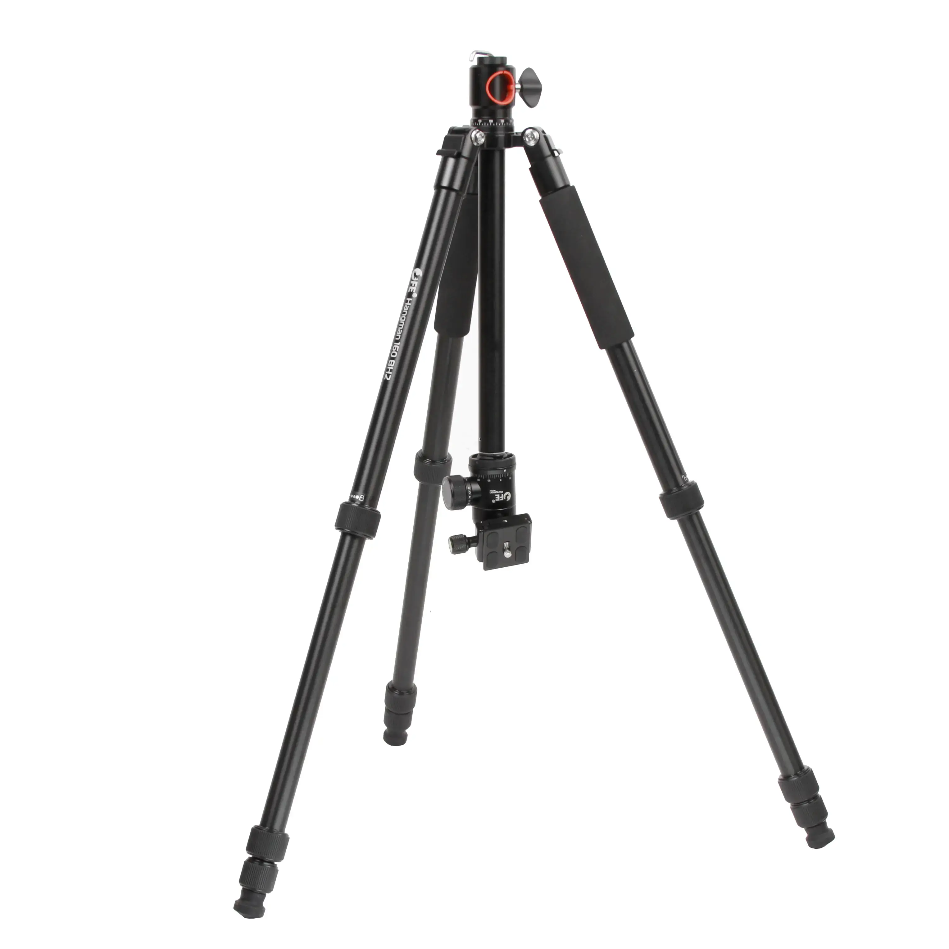 Высота штатива регулируется выдвижением телескопических секций и ходом центральной колонны от 35 до 150 см.