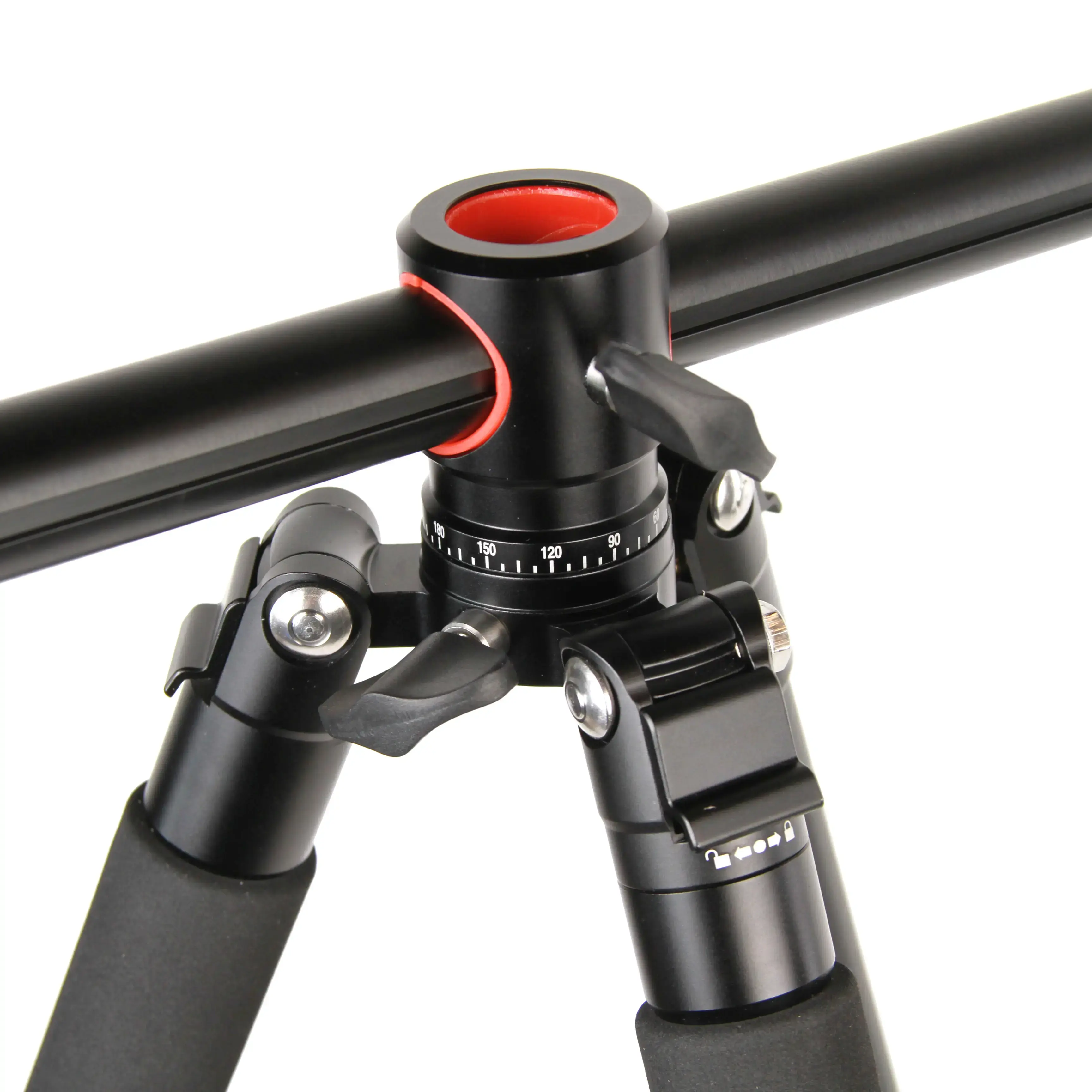 Центральная колонна оснащается шаровой головкой с тремя пузырьковыми уровнями для выравнивания камеры, быстросъемной штативной площадкой и предохранителем, предотвращающим ее случайное выпадение вместе с камерой во время установки.