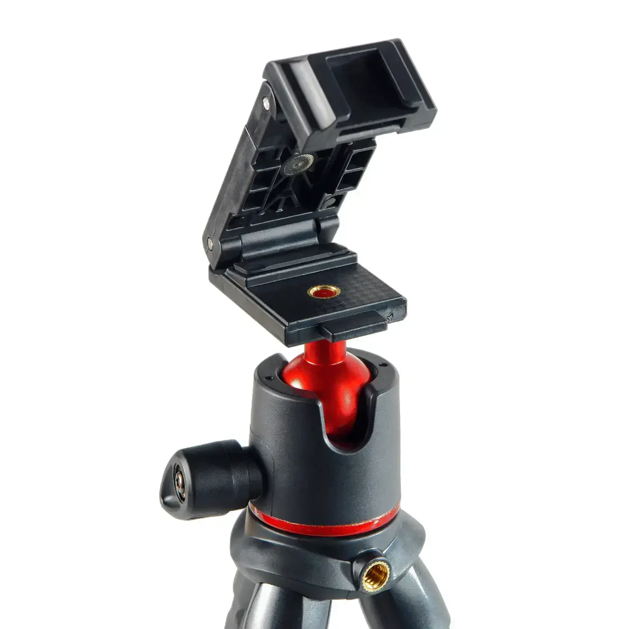- Данная модель штатива включает универсальный набор креплений: головку со встроенным адаптером для смартфона, винт 1/4" для установки цифровой камеры и адаптер для крепления экшн-камеры GoPro