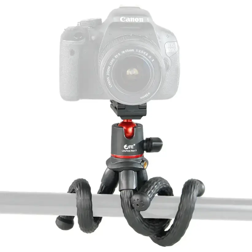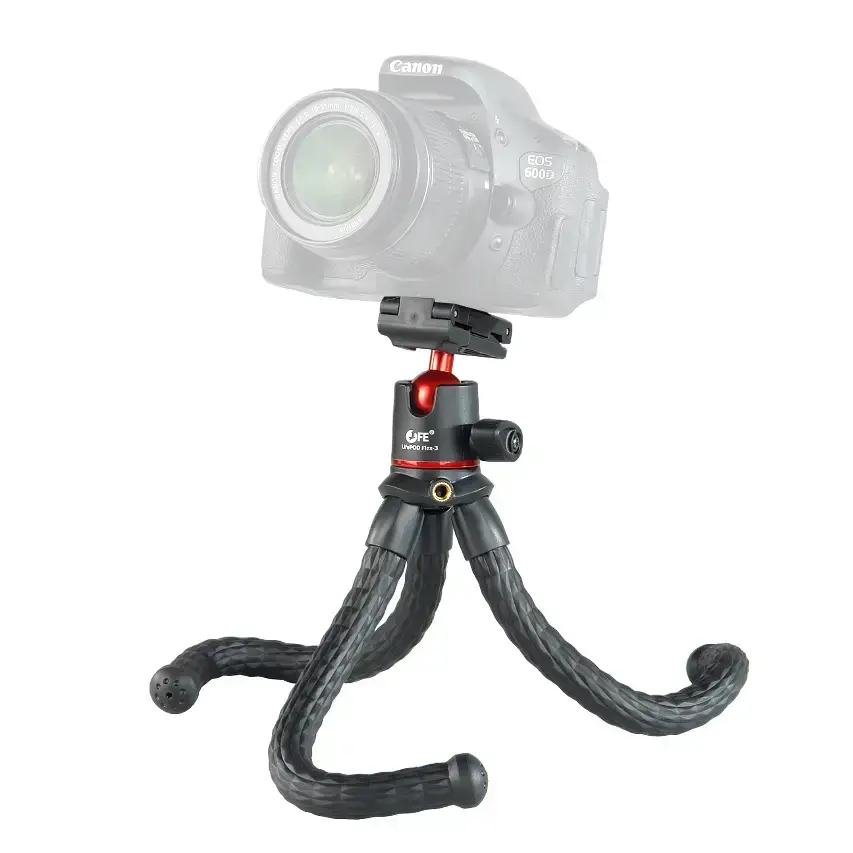- Гибкие ноги штатива с памятью деформации и противоскользящим покрытием обеспечивают устойчивое основание для камеры без скольжения