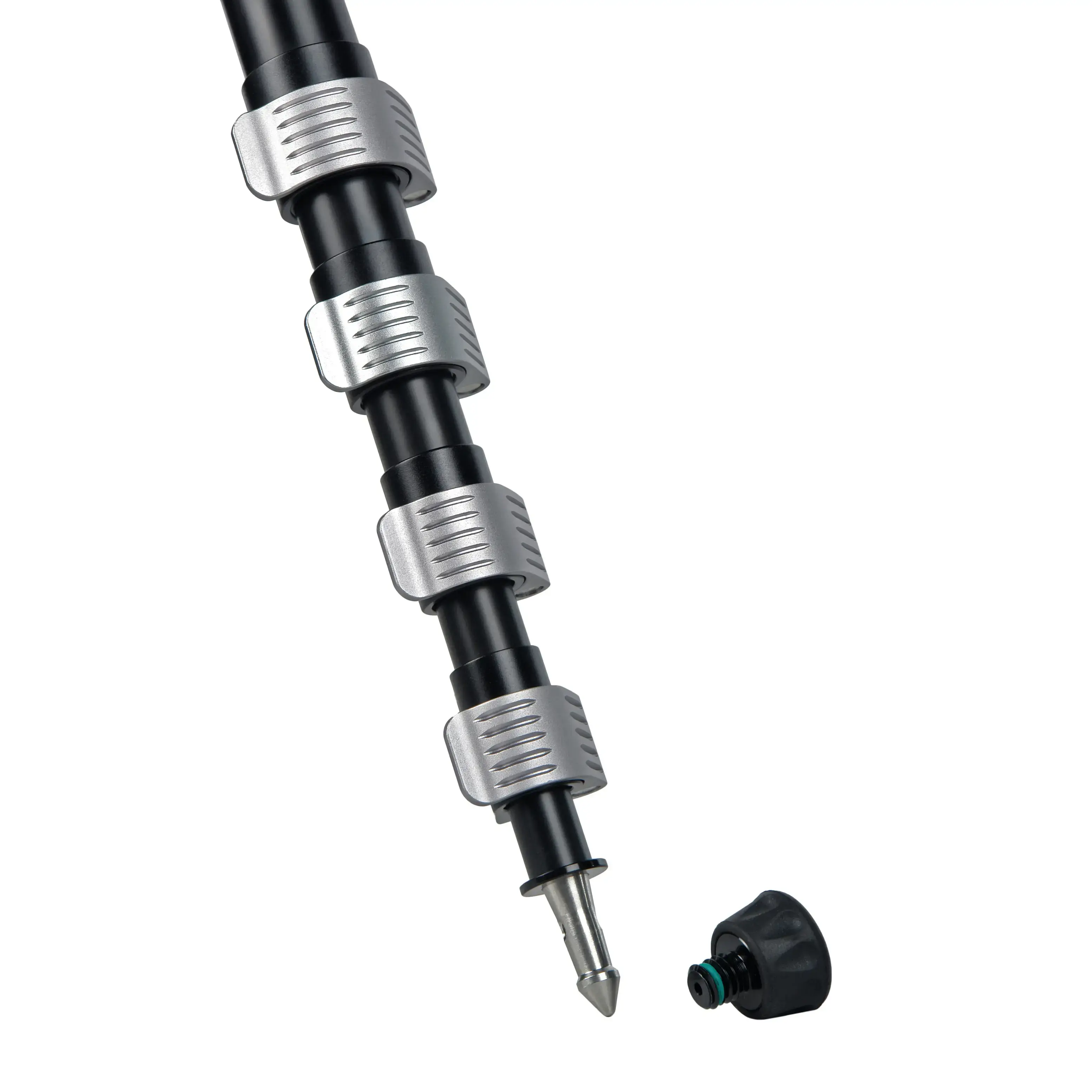 Штатив состоит из пяти секций, которые надёжно фиксируются с помощью тугих клипсовых зажимов. Степень затяжки зажимов регулируется шестигранниками (входят в комплект). Благодаря большому количеству секций, штатив в сложенном виде занимает мало места — всего 43 см в длину, при этом конструкция остаётся устойчивой и надёжной.