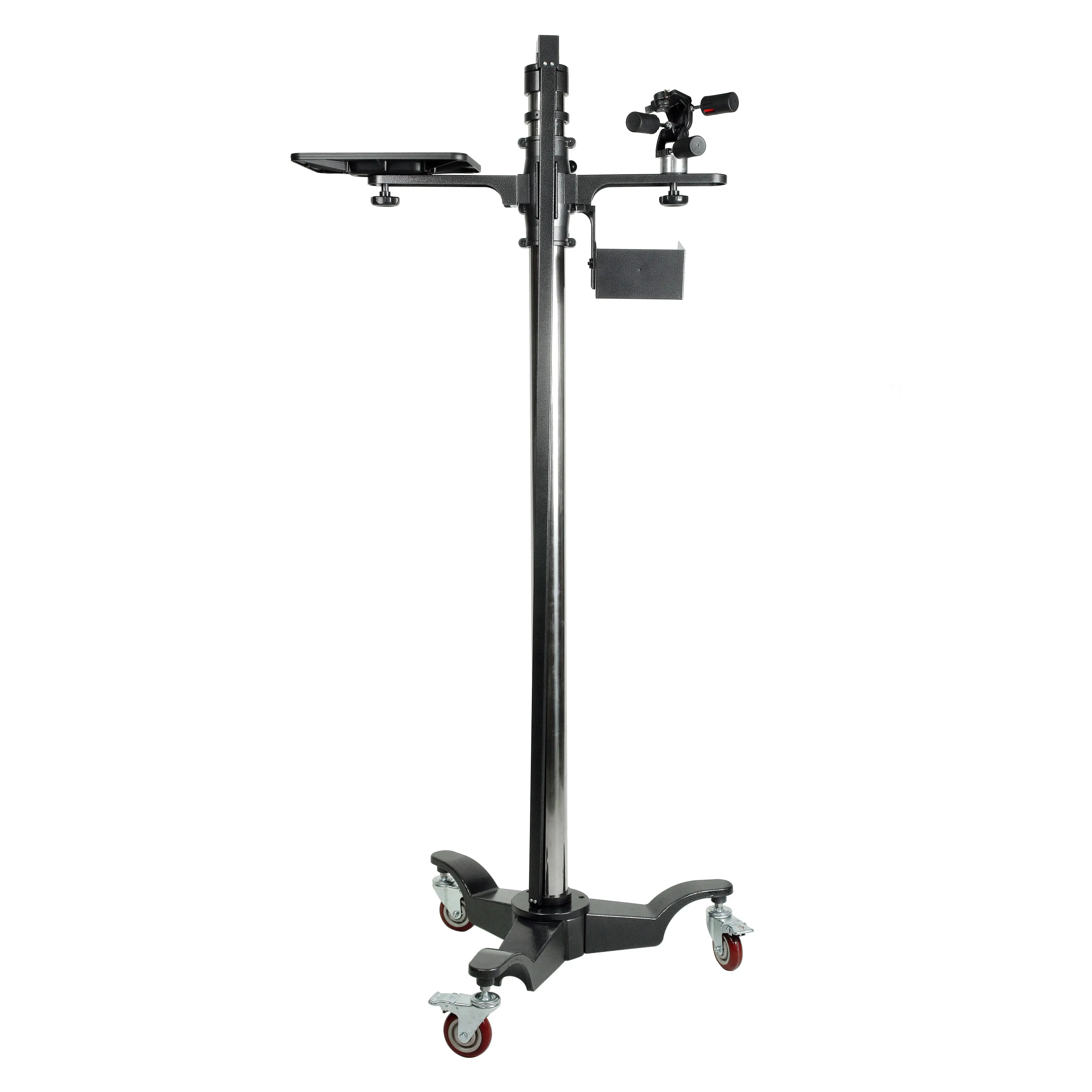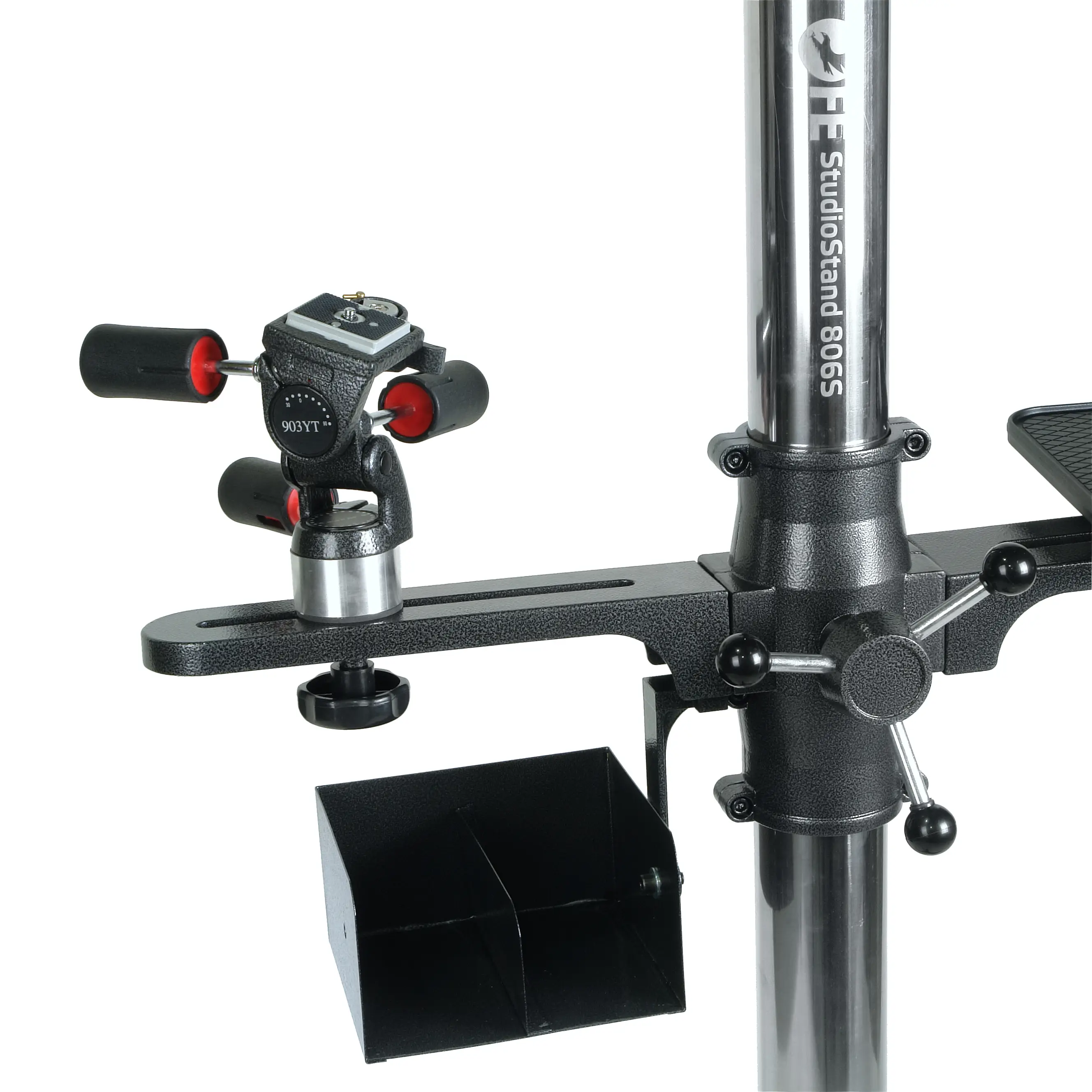 На горизонтальные штанги-консоли монтируются металлический столик (25,5 х 35,5 см) и поворотно-наклонная головка для установки камеры. Максимальный ход головки по штанге составляет 236 мм. К любой из горизонтальных штанг-консолей можно прикрепить лоток для аксессуаров.