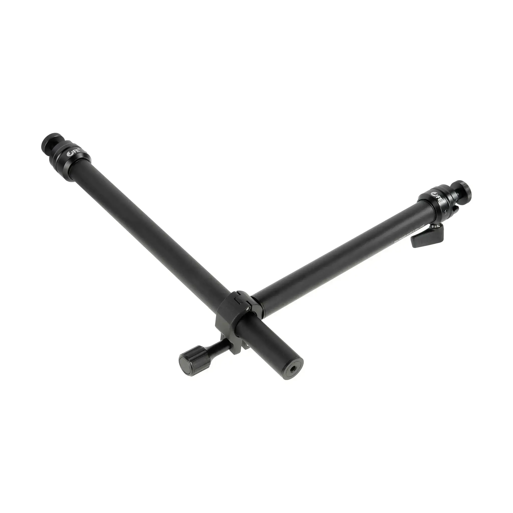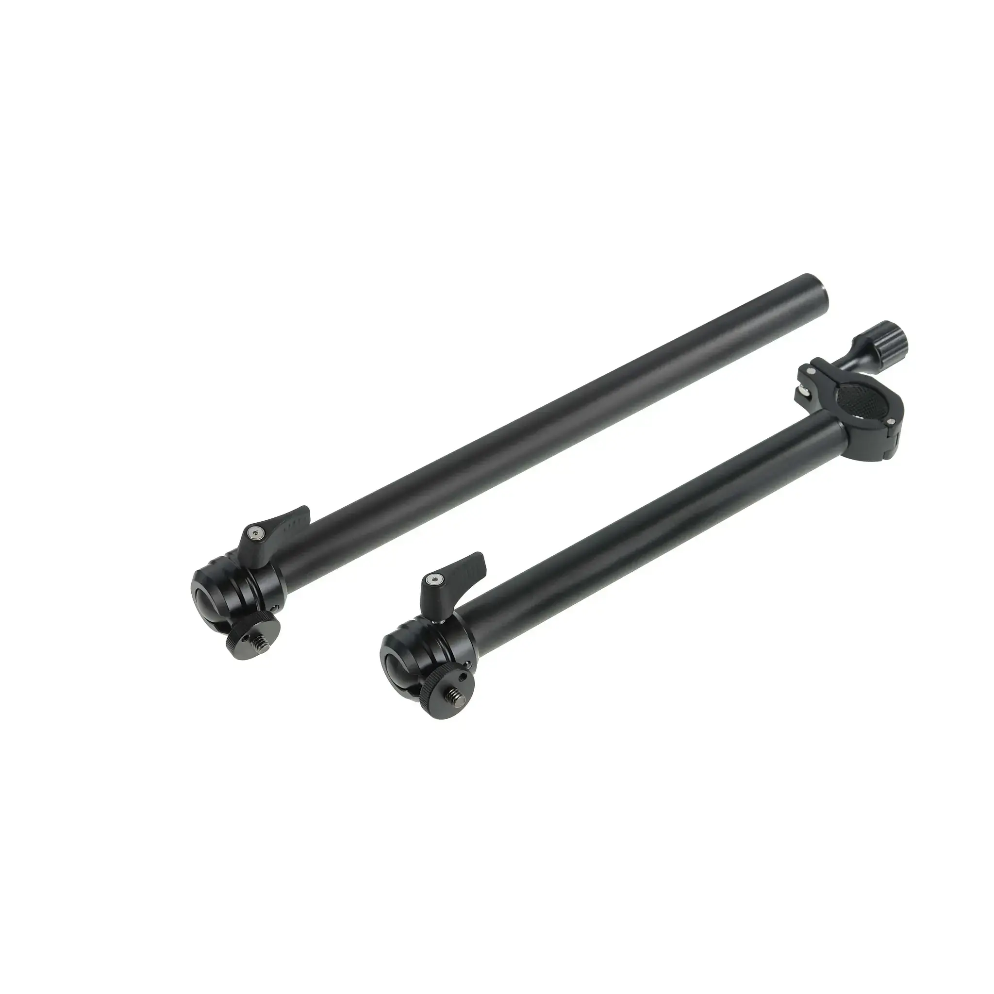 В комплект входят штанга с муфтой и удлинительная штанга, каждая из которых оснащена шаровой мини-головкой с винтом 1/4" для крепления следующей секции или студийного оборудования. Металлическая шаровая мини-головка помогает закрепить оборудование под углом до 90° и с поворотом на 360°. Хомут штанги дает возможность установить систему на стойках, штативах, перекладинах с диаметром трубы от 20 до 28 мм.