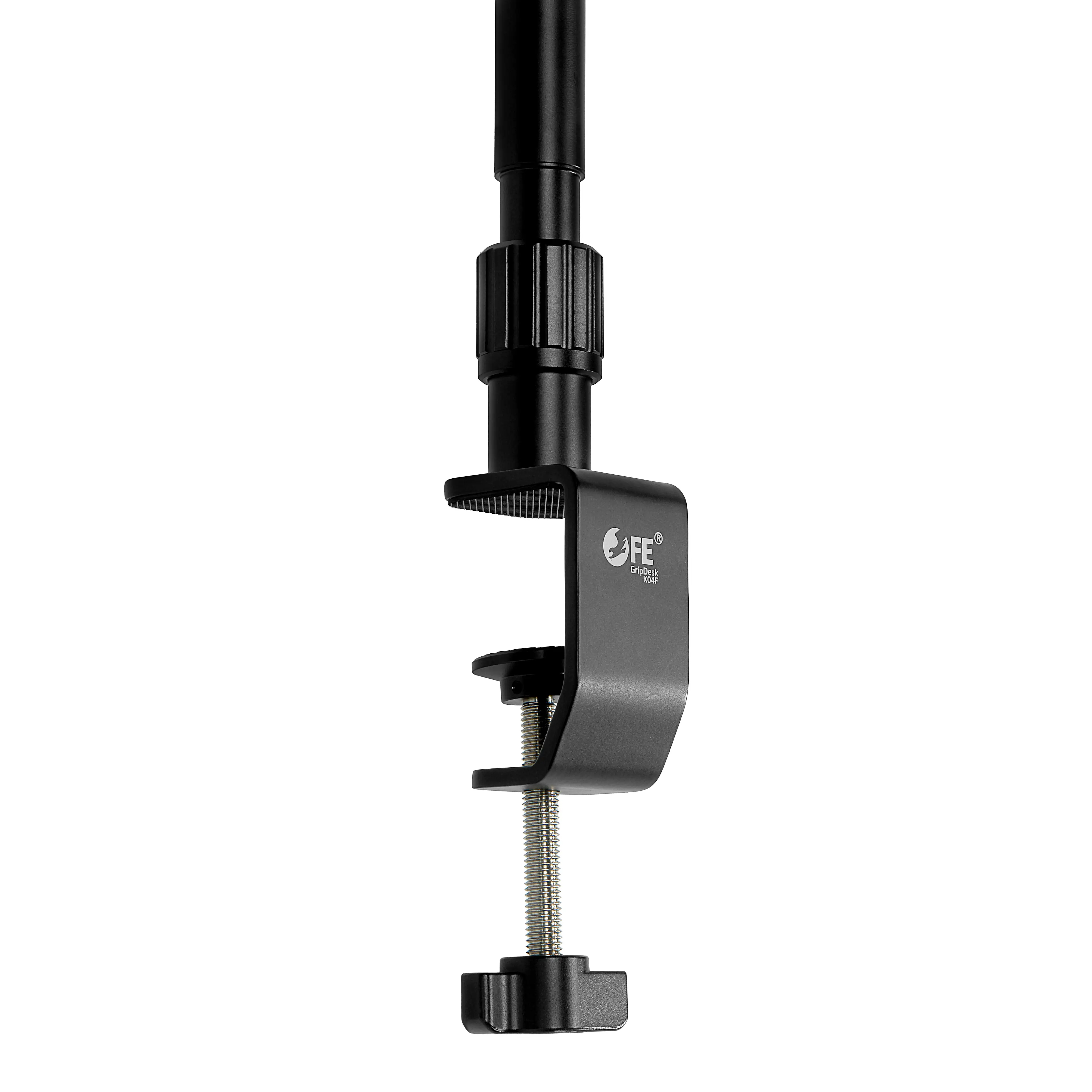 Трехсекционный держатель оснащен мини-головкой с винтом 1/4" для крепления студийного оборудования. Металлическая мини-головка помогает закрепить оборудование под углом до 90° и с поворотом на 360°. Струбцина зажимается на плоской поверхности толщиной до 60 мм. Максимальная высота установки оборудования – 95 см.