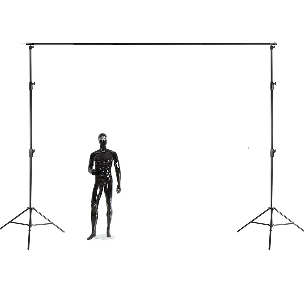 Система установки тканевого фона поставляется в комплекте из двух стоек, составной перекладины и стойки.