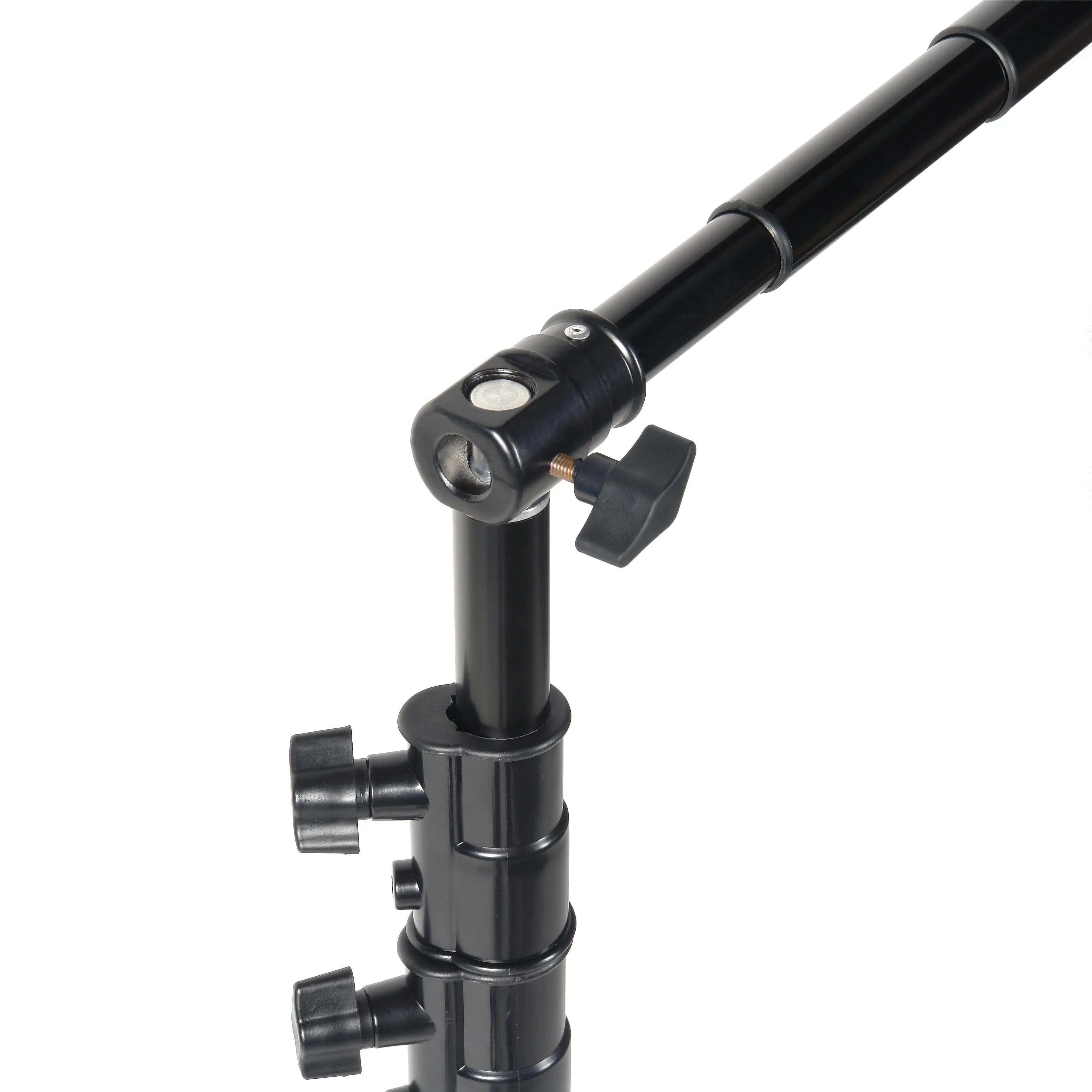 Телескопическая 3-секционная горизонтальная перекладина раздвигается на длину от 1 до 3 метров. Секции перекладины плавно выдвигаются и фиксируются скрытыми зажимами. Стыки между секциями практически не видны – натяжение фона будет ровным, без складок.