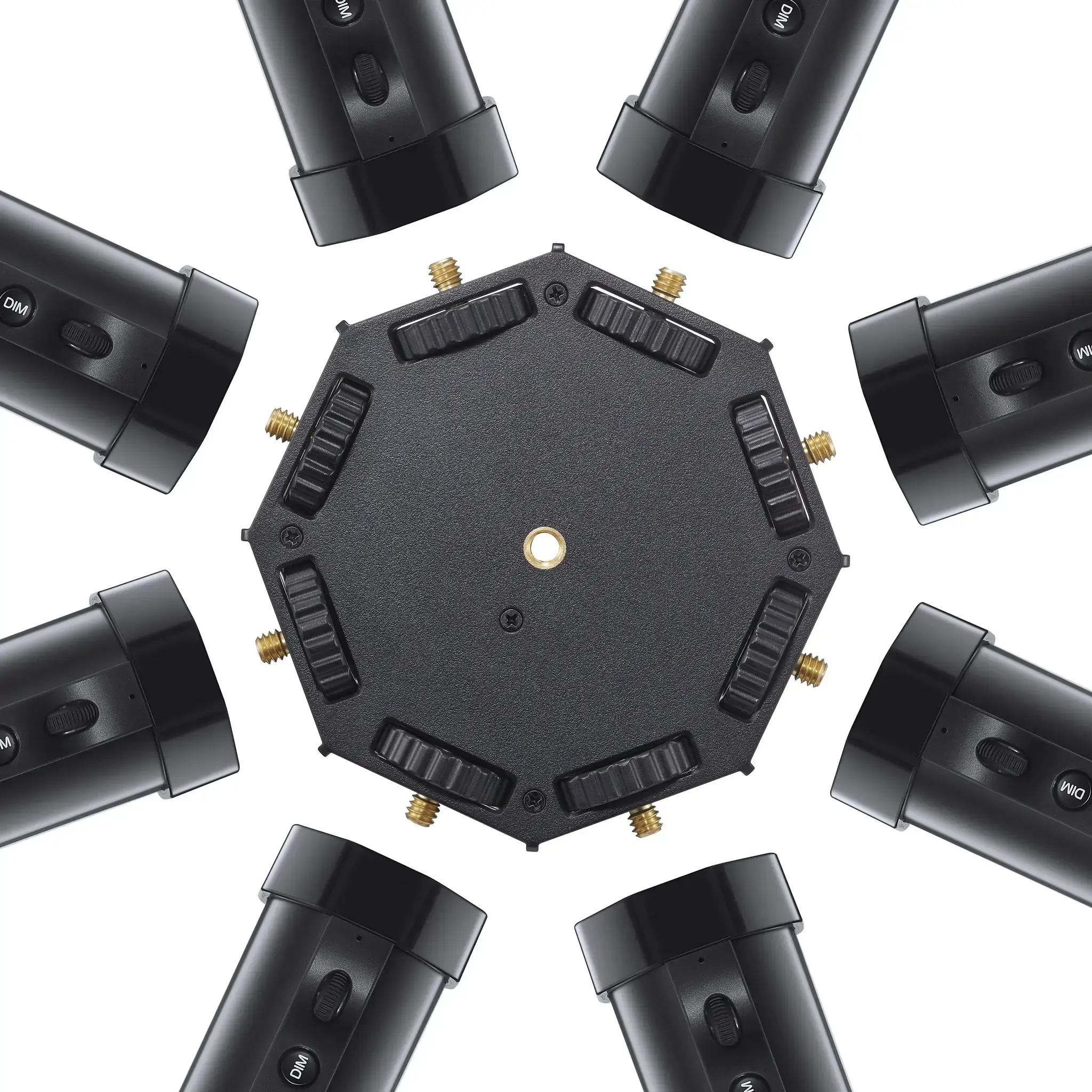 Держатель Godox TL-M8 позволяет объединять до восьми светодиодных осветителей TL-30 RGB при помощи винтов с резьбой 1/4". Объединенные осветители могут составлять различные свето-цветовые композиции.