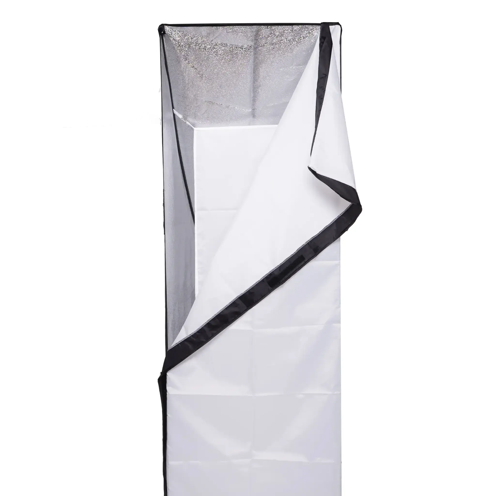 Тент-отражатель софтбокса изготавливается из специальной синтетической ткани с внутренней серебристой светоотражающей поверхностью. Серебристая поверхность обеспечивает равномерное распределение светового потока внутри софтбокса с минимальными потерями на светоотражение.