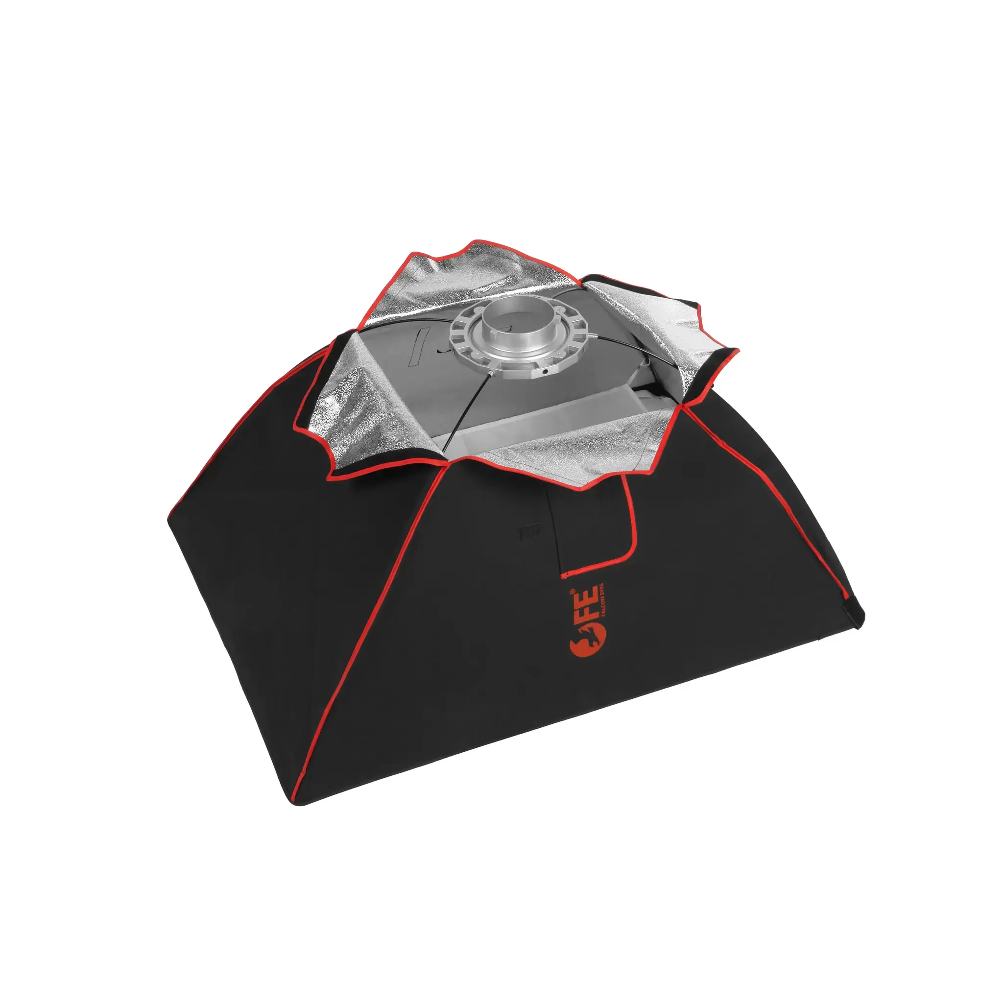 Внешний и внутренний рассеиватели (диффузоры) изготовлены из тонких жаропрочных синтетических материалов. Внешний тканевый рассеиватель фиксируется на липучках по краю тента отражателя, внутренний – закрепляется при помощи карабинчиков на резинках.