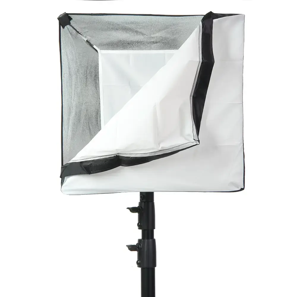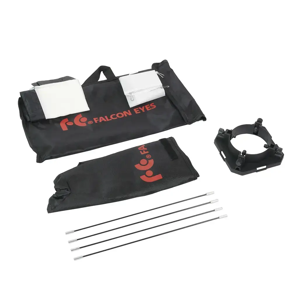 Закрытая конструкция позволяет избежать нежелательных бликов и потерь светового потока. Отражатель, с серебристой тканью внутри, обеспечивает равномерную засветку рассеивателя, который в свою очередь, благодаря большой поверхности, смягчает формируемые тени. Дополнительный внутренний диффузор улучшает равномерность светового потока. Наконечники на упругих металлических спицах не повреждают тканевые спицедержатели софтбокса и облегчают сборку конструкции.