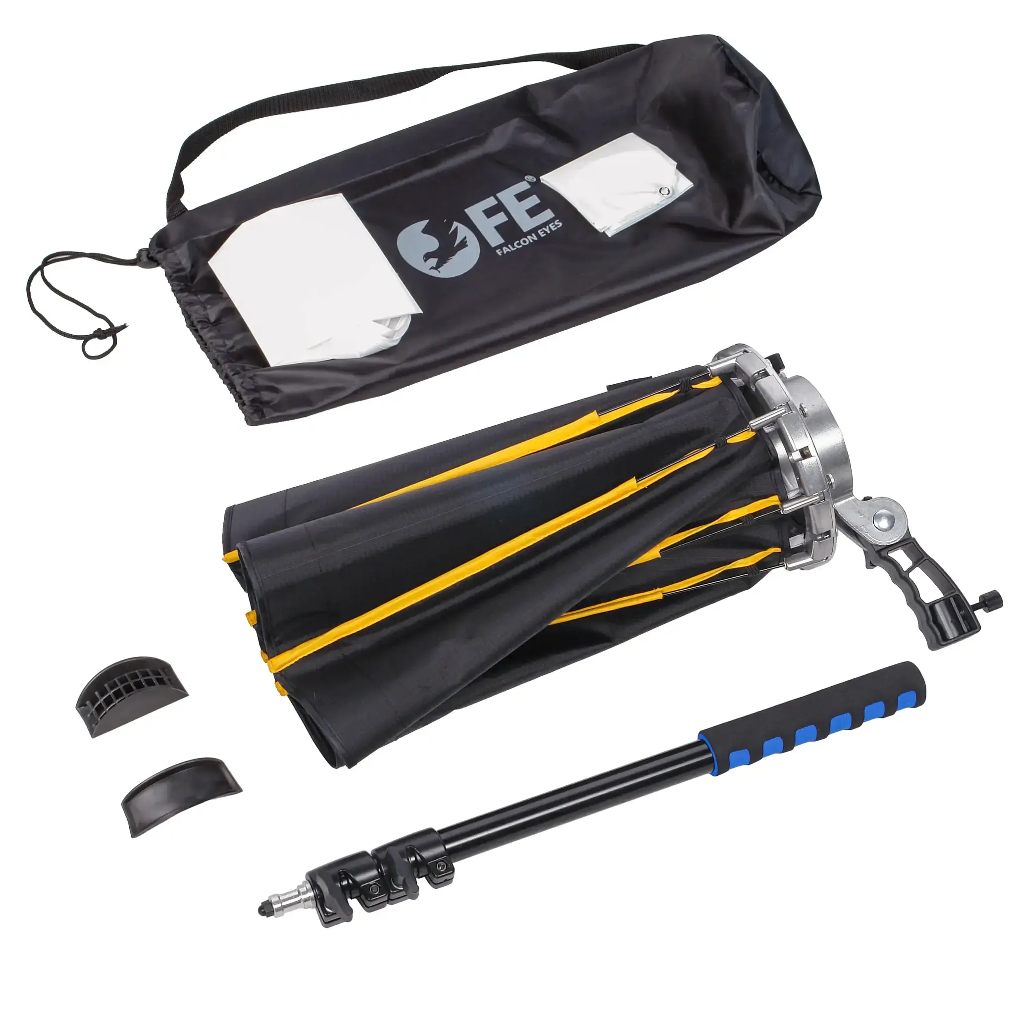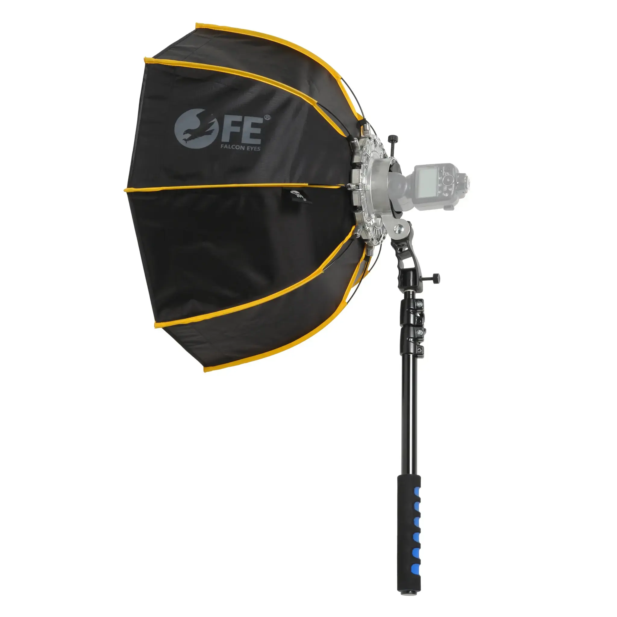 Falcon Eyes StrobMaster 60 – быстроскладной октобокс ?60 см и глубиной 38 см. Компактный софтбокс весит менее 1 кг, раскладывается и собирается за минуту и подходит для использования на выездных фотосессиях. Во время съемки вспышка, соединенная с софтбоксом, удерживается в руке, а телескопический держатель с прорезиненной ручкой позволит удлинить рукоятку на 0.5–1.25 м.