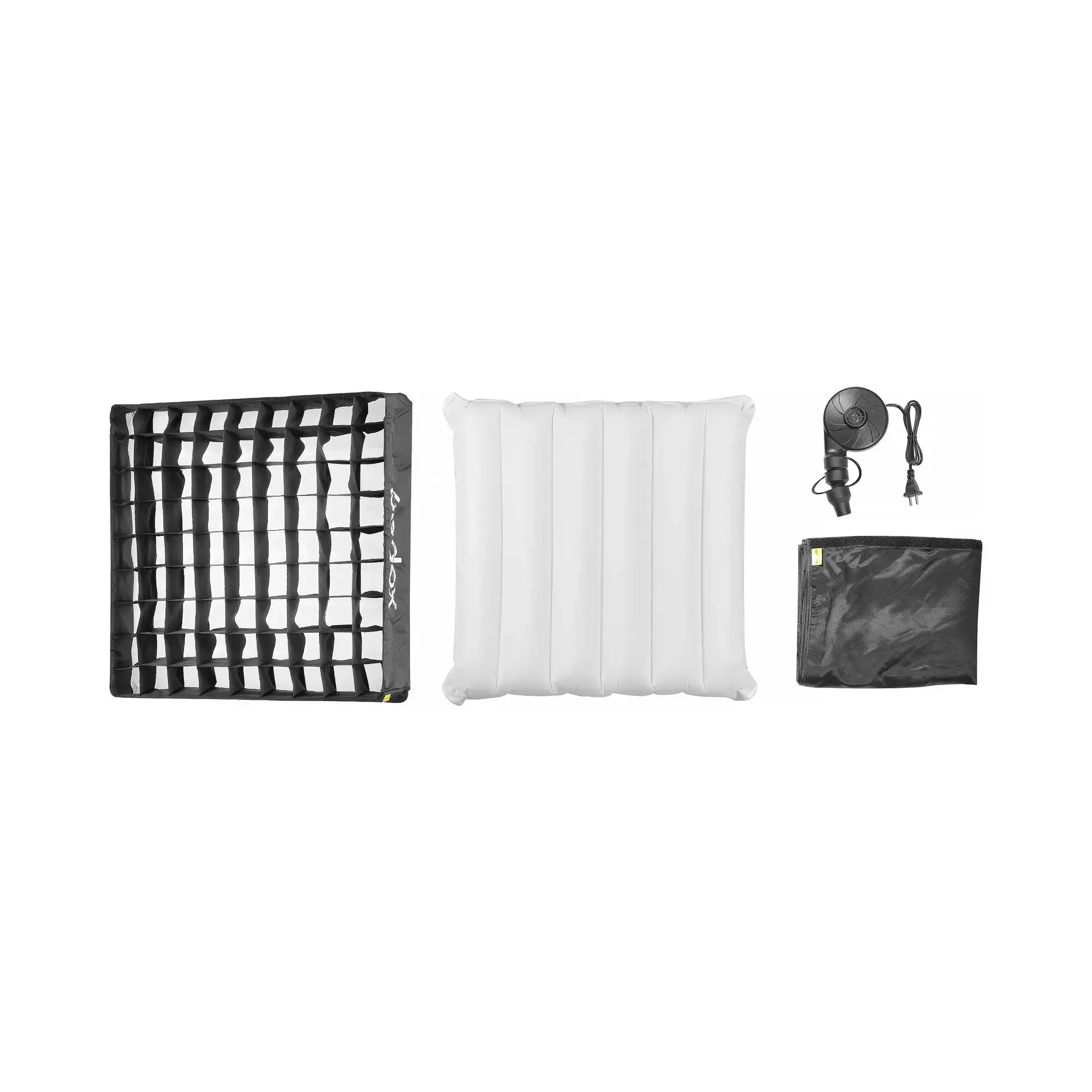 В сдутом виде FA200 компактно складывается и занимает совсем немного места. Вместе с аксессуарами и насосом он весит всего 1,74 кг. К софтбоксу прилагается сумка для хранения и перевозки размером 53х35 см, в которую помещается весь комплект.