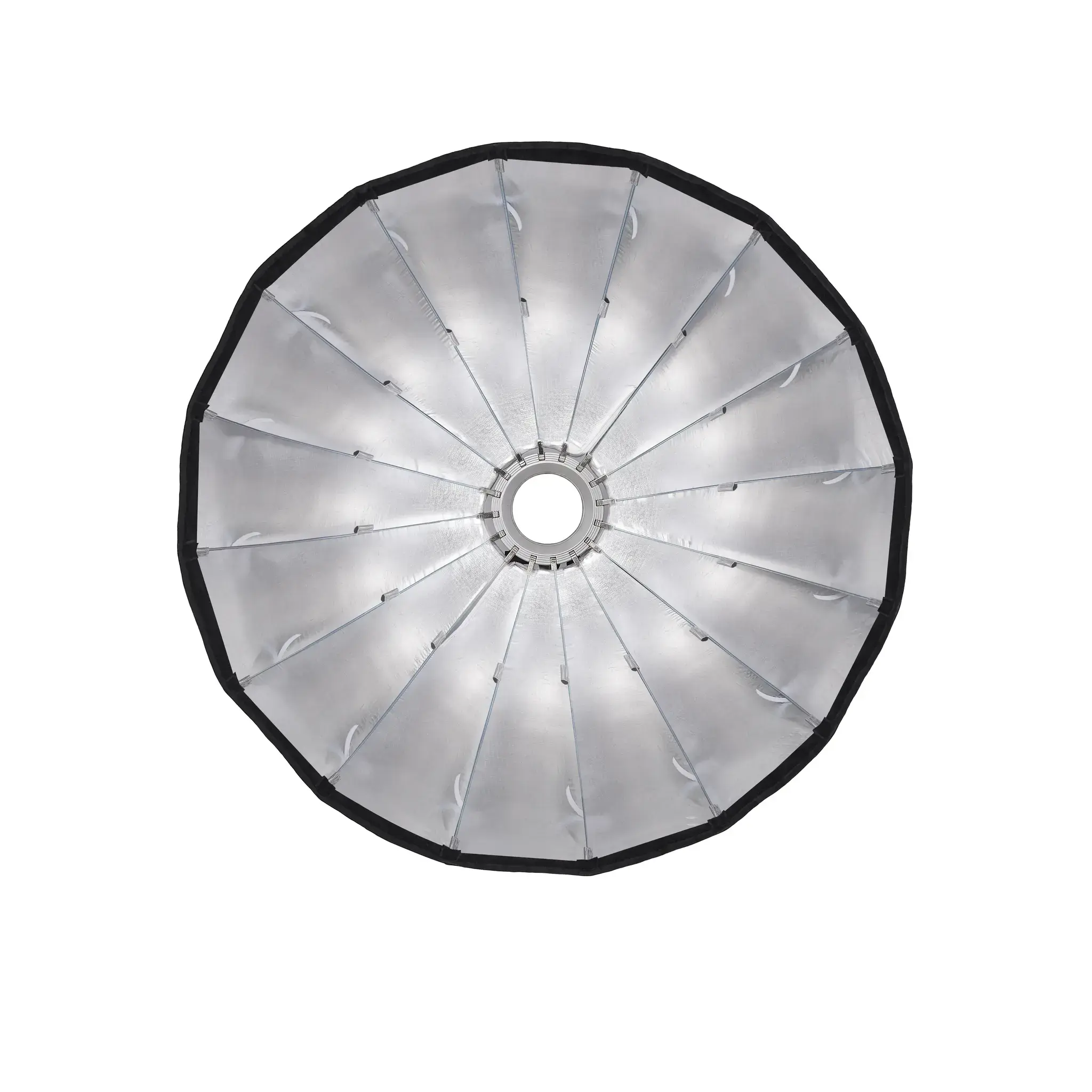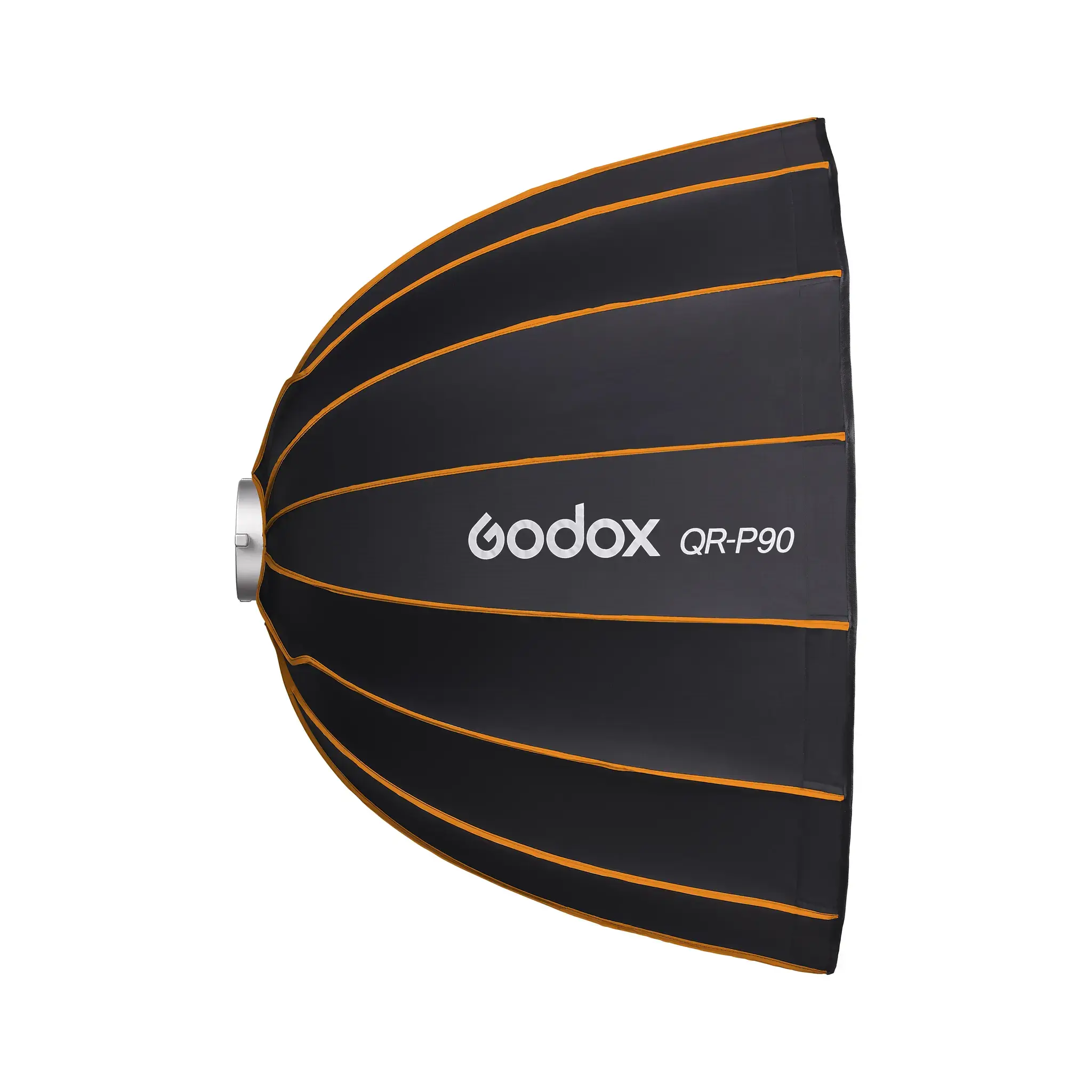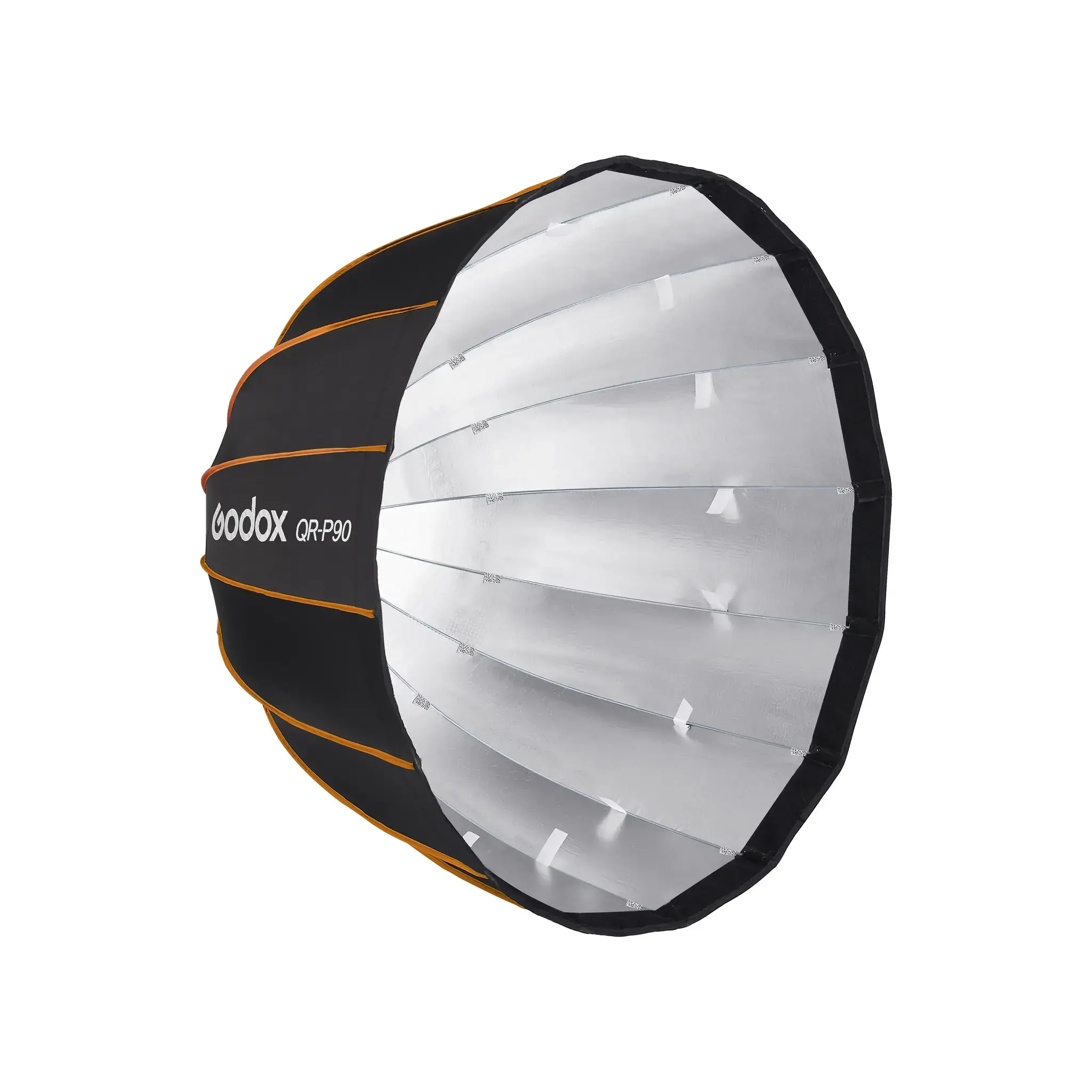 Godox QR-P90 – быстроскладной параболический 16-секционный софтбокс с диаметром описывающей окружности 90 см и глубиной 60 см. Софтбокс может использоваться совместно с импульсными вспышками и светодиодными осветителями с байонетом Bowens, чтобы формировать мягкий равномерный световой поток с четким ровным краем светового пятна. Такое освещение придает объем и детализацию объекту съемки, а почти круглая форма насадки может добавить оригинальный блик в глазах или на блестящей поверхности. Благодаря быстроскладной конструкции, Godox QR-P подойдёт фотографам и видеографам, часто работающим на выезде или в небольших студиях, где нет возможности хранить громоздкое оборудование.
