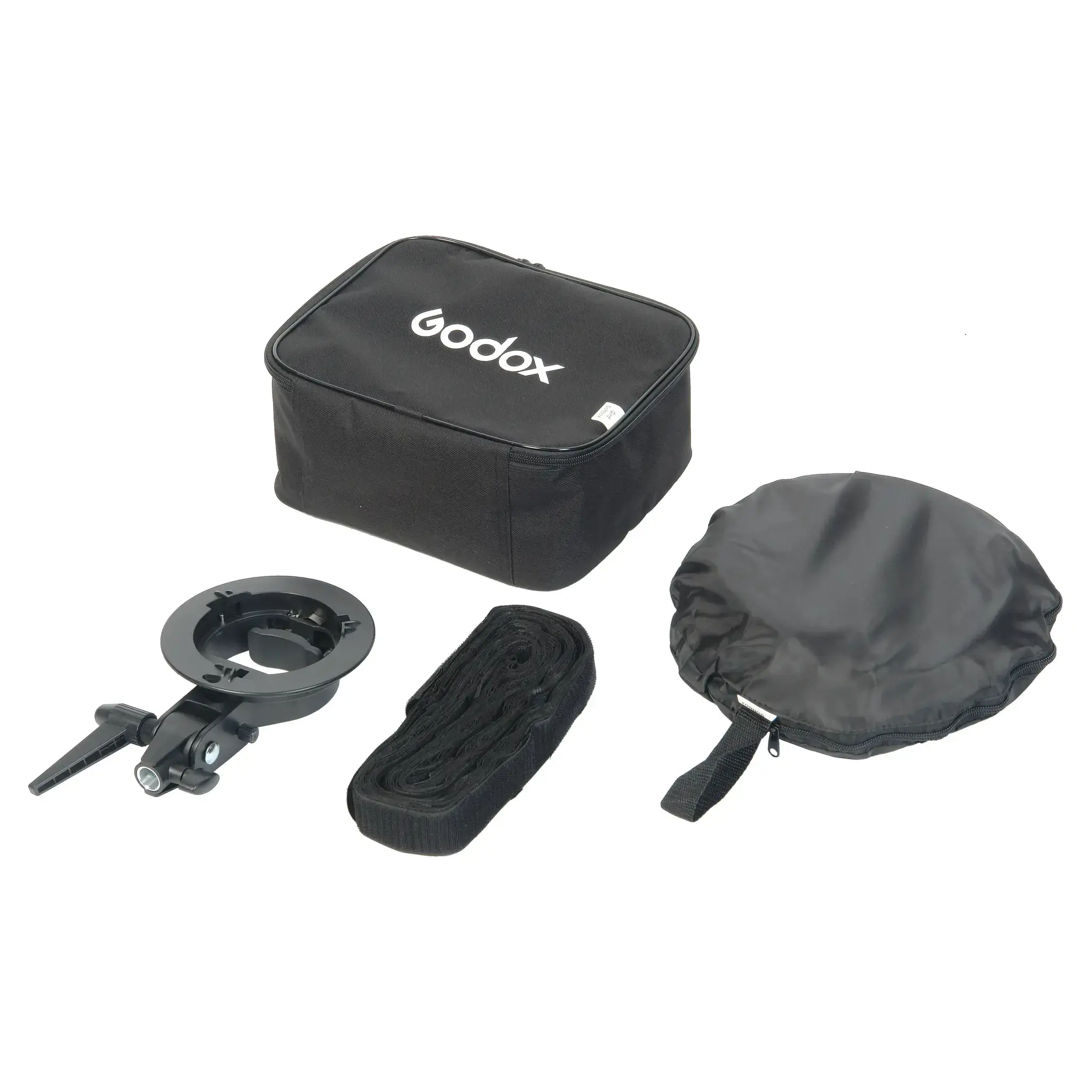 Софтбокс Godox SFGV8080 (80x80cm) предназначен для использования с накамерной вспышкой и разработан в для фотографов, работающих на выездных фотосъемках «в полях», а также для использования в небольших фотостудиях и домашних условиях. Комплект состоящий из софтбокса, тканевого рассеивателя и кронштейна-адаптера S, упакован в прочную компактную сумку размером 28х23х14 см – отлично подходящую для переноски и для хранения.