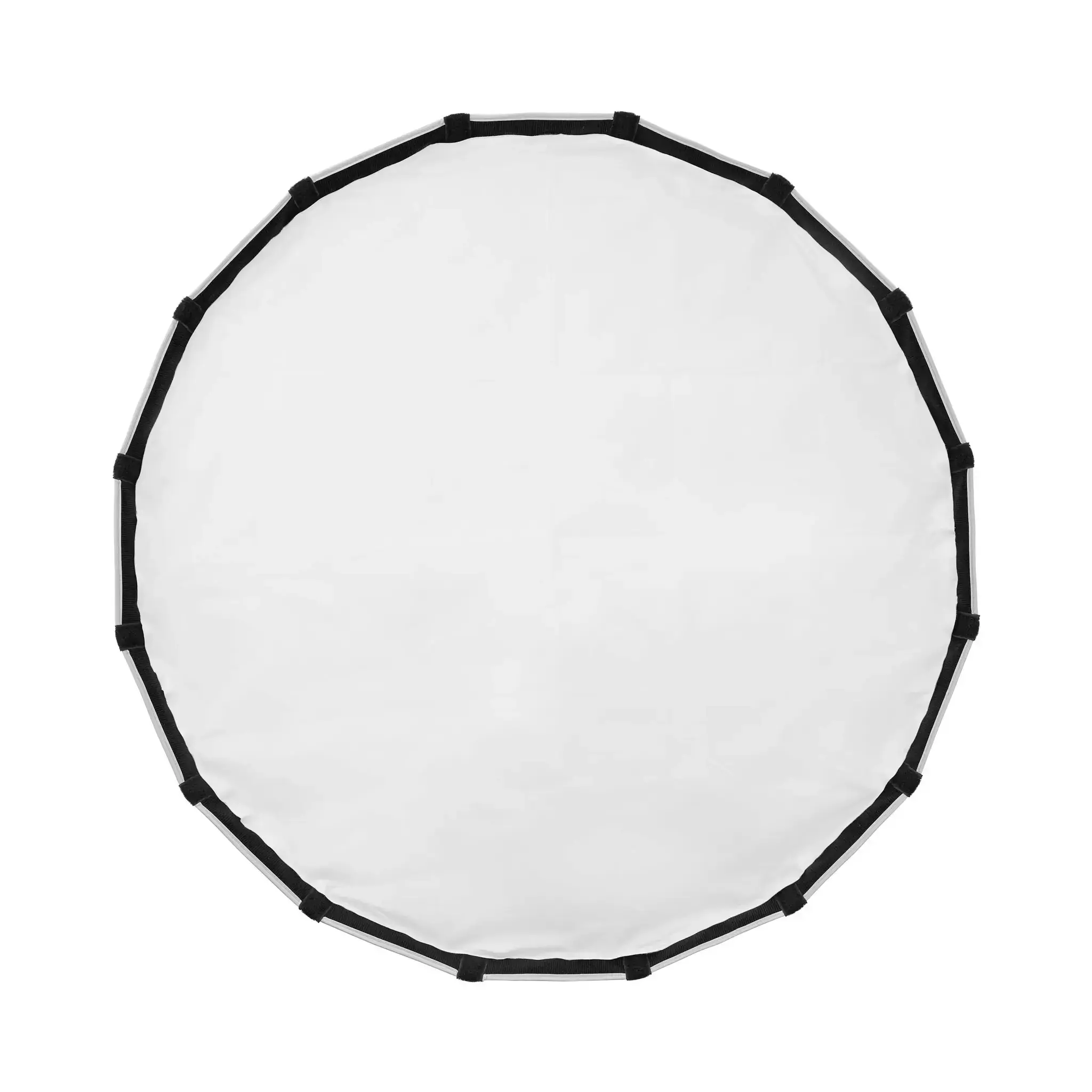 С помощью металлического отражателя Godox S65T-P (приобретается отдельно) можно получить еще более равномерное освещение при съемке, имитируя световую схему от портретной тарелки. При этом софтбокс имеет небольшой вес и компактные размеры в сложенном виде в отличии от тяжелого монолитного светомодификатора beauty dish.