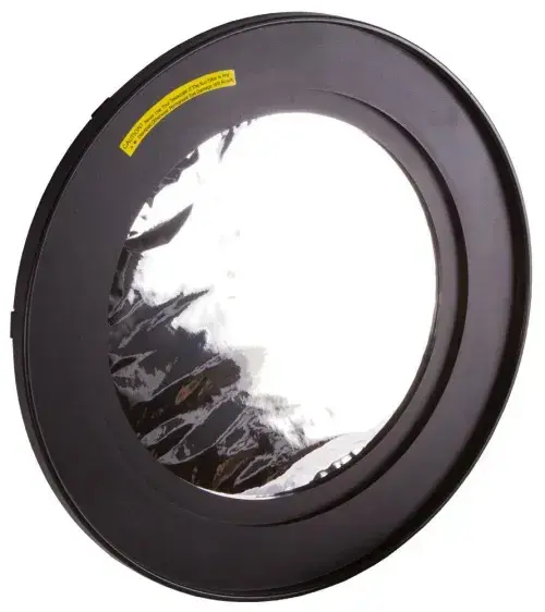 Солнечный фильтр Sky-Watcher для рефлекторов 250 мм – аксессуар для прямого наблюдения Солнца в телескоп. Он сделан из светоотражающей астрономической пленки, которая не пропускает вредное для зрения излучение и делает изучение солнечной активности безопасным и комфортным. Фильтр фиксируется внутри трубы и закрывает собой весь световой диаметр.