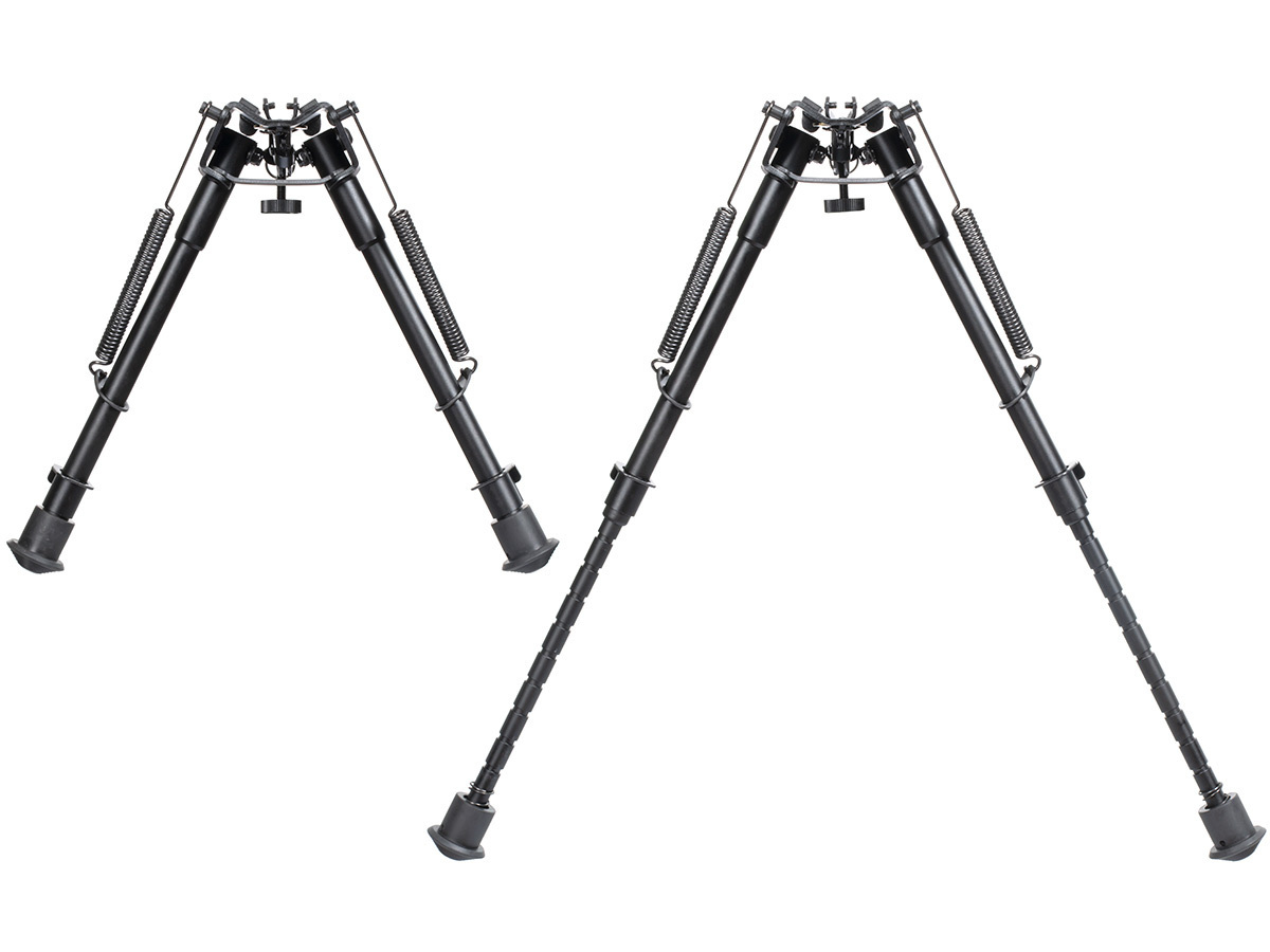 Длина ножек ступенчато регулируется от 225 до 375мм, что обеспечивает высоту сошек от 208 до 343мм. Каждая ножка состоит из двух секций и имеет 10 позиций регулировки длины. Ножки раскладываются автоматически, нажатием на кнопку, а складываются вручную. При нажатии на кнопку секция выдвигается на всю длину под действием пружины. Для регулировки длины и возврата в исходное положение нужно удерживать кнопку нажатой и двигать ножку руками.