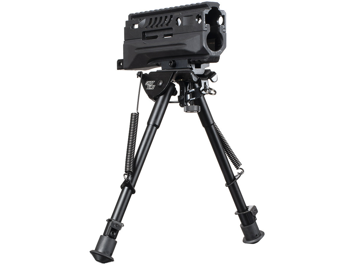 Усиленная конструкция сошек обеспечивает дополнительную фиксацию ствола в направлении стрельбы, повышение кучности и устойчивости оружия. При правильной установке ножки сошек складываются вдоль цевья или ствола только вперёд (в сторону дульного среза).
