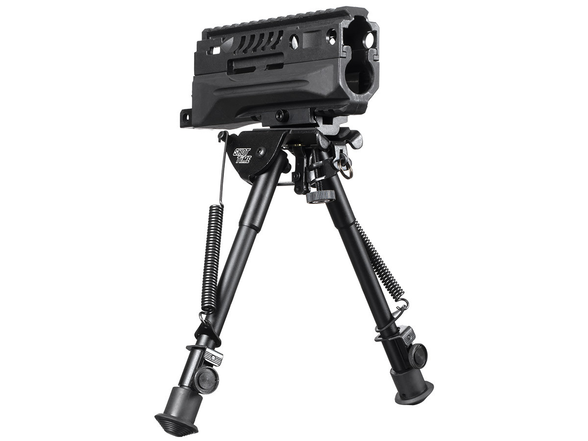 Cошки ShotTime BPST-1A2-L предназначены для установки на оружие, имеющее на цевье антабочный винт. При помощи входящего в комплект переходника сошки могут быть установлены на планку Weaver/Picatinny. Сошки имеют неподвижное основание без качалки. Подходят для стрельбы сидя со стола или лёжа.