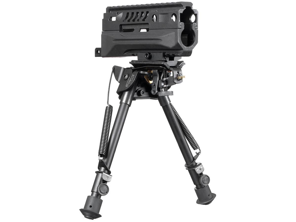 Усиленная конструкция сошек обеспечивает дополнительную фиксацию ствола в направлении стрельбы, повышение кучности и устойчивости оружия. При правильной установке ножки сошек складываются вдоль цевья или ствола только вперёд (в сторону дульного среза).