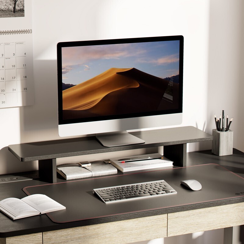 Поднимите ваш монитор повыше благодаря входящей в комплект полки под монитор, позволяющей уменьшить напряжение шеи, сделать позу более здоровой и дать дополнительное место для хранения.
