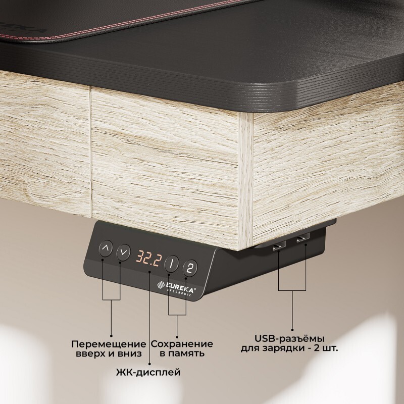 Легко поднимайте и опускайте столешницу одним нажатием. Две программируемые пред.установки в памяти позволяют вам сохранять настройки высоты для работы сидя и стоя. Встроенные USB-разъёмы поддержат ваши устройства в заряженном состоянии и в зоне досягаемости.