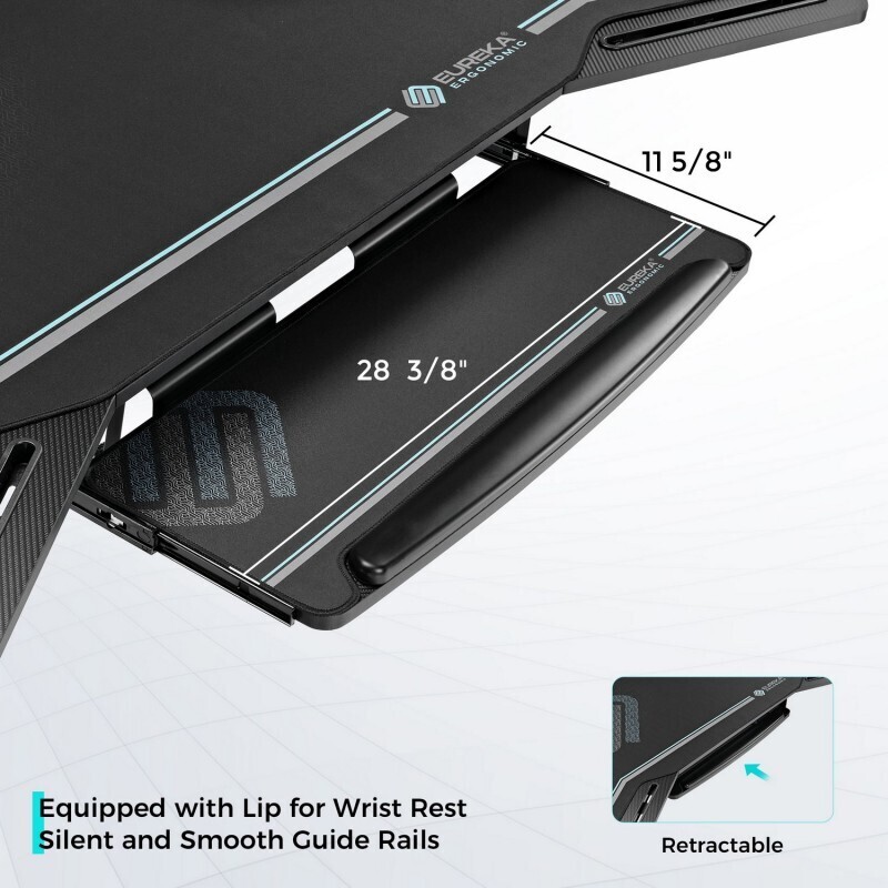 Eureka Gaming учитывает ваши различные потребности, поэтому вы можете сосредоточиться на таких важных вещах, как учеба, работа, игры или отдых. Стол Eureka AED-E70B имеет широкую столешницу с поверхностью в стиле "карбон", что позволяет разместить на столе несколько игровых мониторов, Xbox, PS4 и другие ваши игровые девайсы. Входящая в комплект подставка для клавиатуры, подставка для монитора, подстаканник, крючок для наушников, подставка для контроллера и система управления кабелями позволяют освободить больше полезного места на столе. Благодаря специальной системе управления кабелями, на вашем столе никогда не будет лишних проводов. Столешница оснащена несколькими слотами для укладки кабелей под столом, освобождая пространство для игровых девайсов..