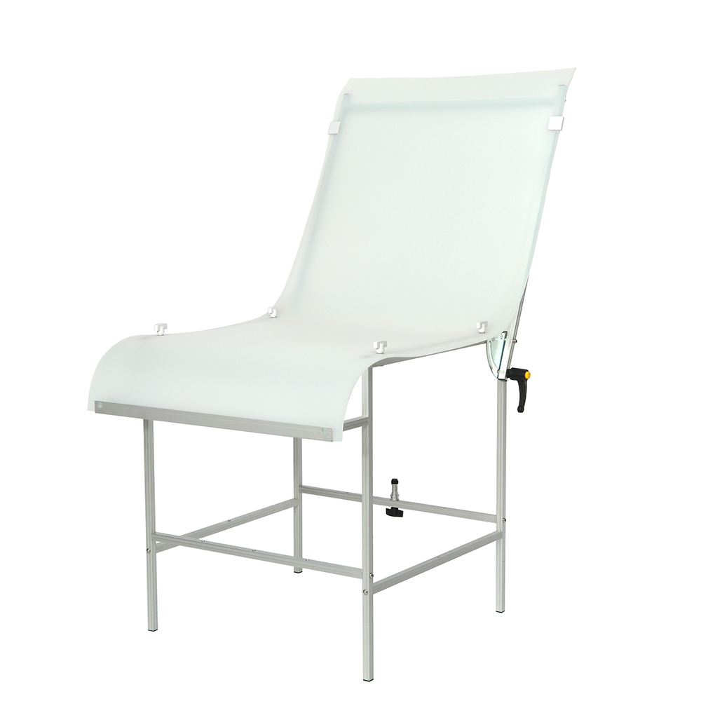 Стол Falcon Eyes ST-0613T предназначен для бестеневой съемки предметов весом не более 15 кг. Комплектуется гибким белым пластиковым фоном размером 60х130 см, который может освещаться на просвет. Спинка стола раскладывается в горизонтальное положение. Конструкция каркаса, изготовленная из алюминиевого профиля размером 15х15 мм, предусматривает установку осветительных приборов для подсветки снизу (на просвет) и сверху.