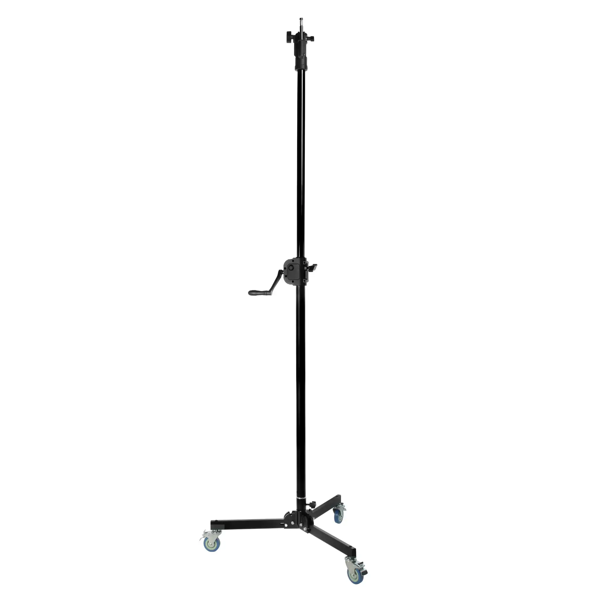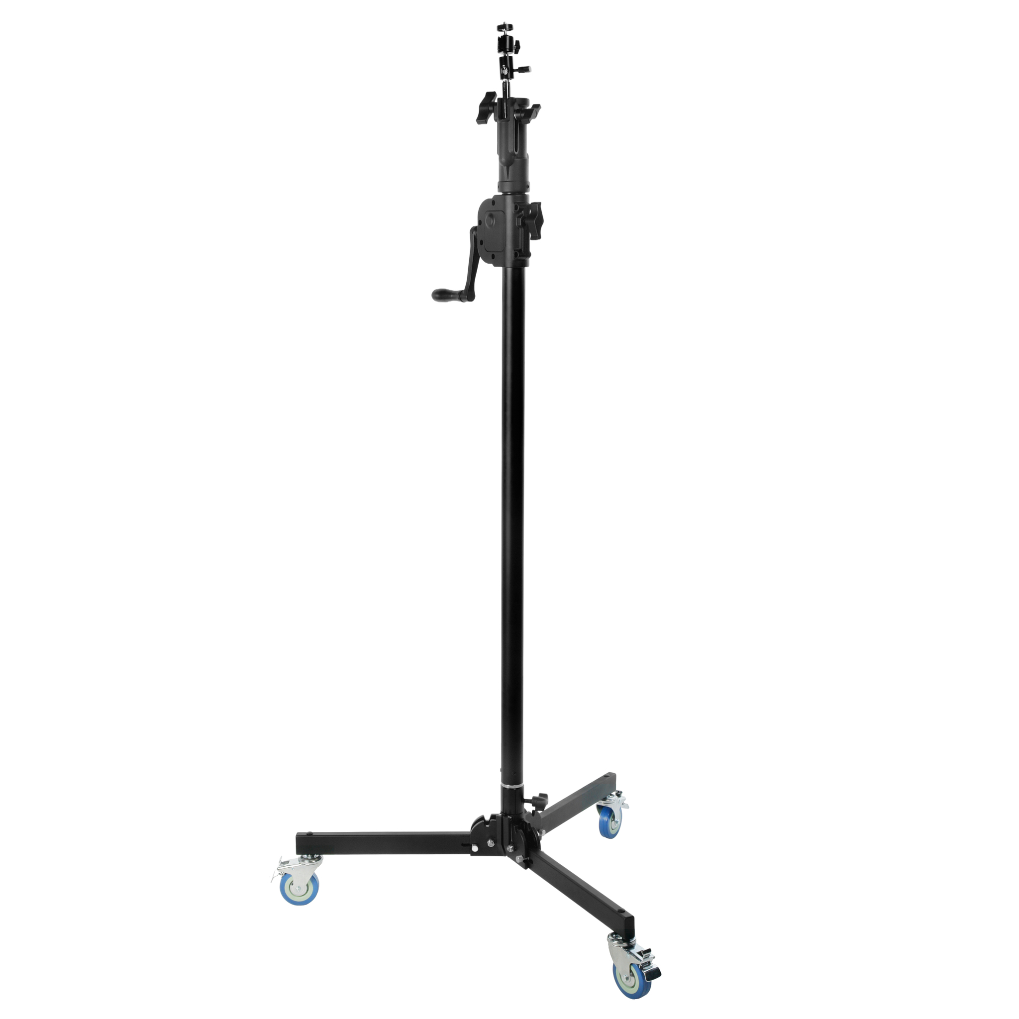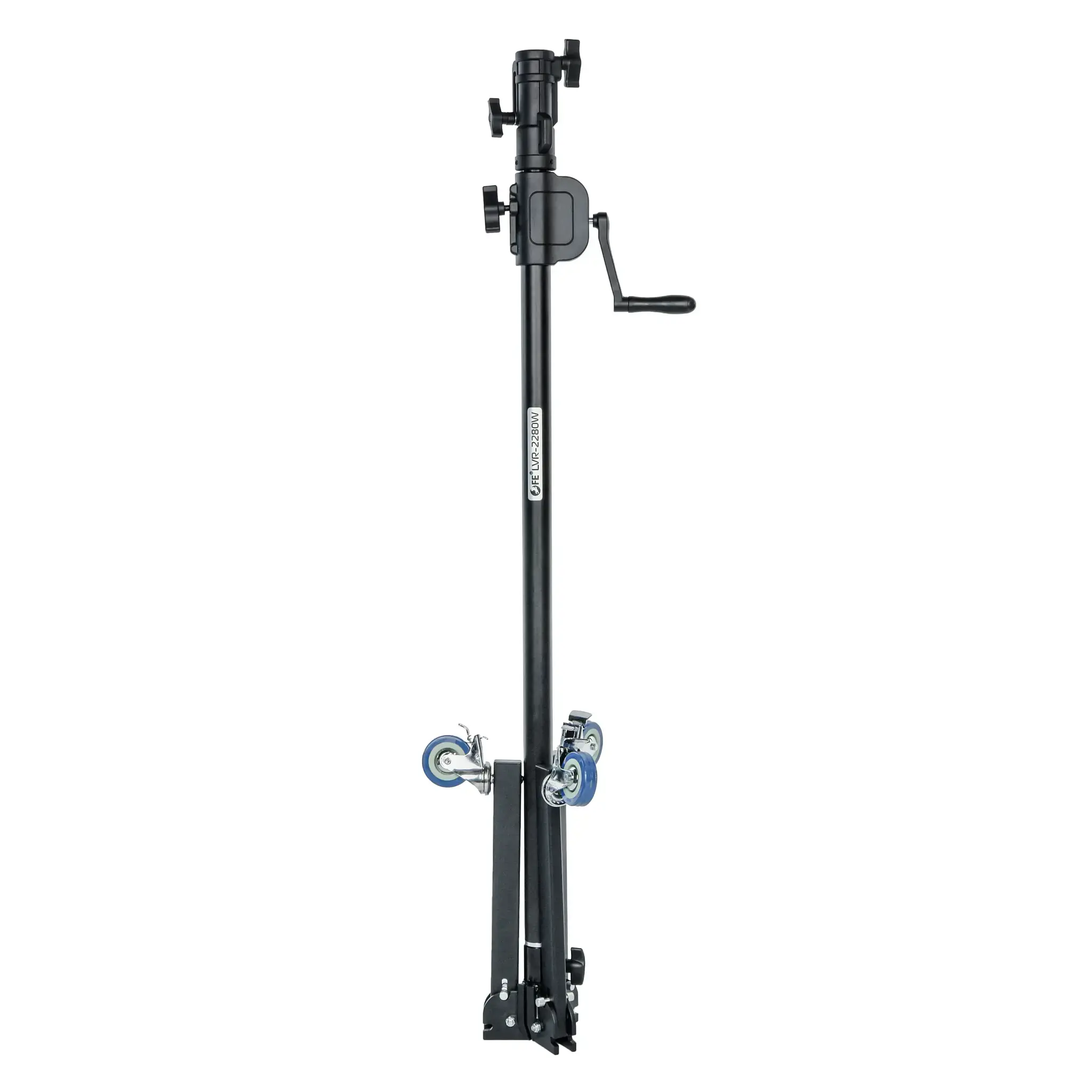 Falcon Eyes LVR-2280W — это прочная стальная стойка типа «Wind-Up» на колесах с редукторной колонной, предназначенная для установки тяжелых цифровых фото и видеокамер. Стойка оснащена адаптером Junior и наклонным штифтом Baby 5/8” с шаровой мини-головкой, что обеспечивает надежное крепление оборудования.
