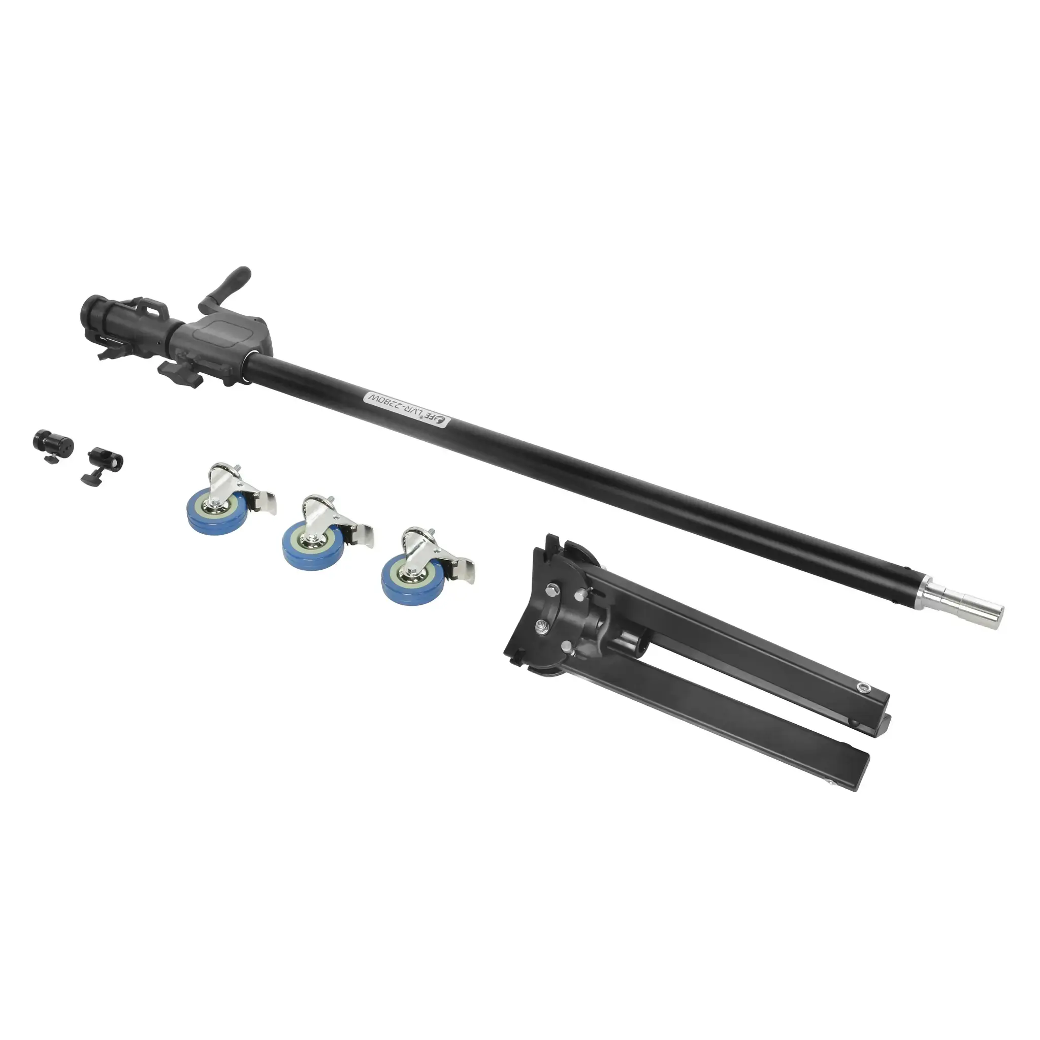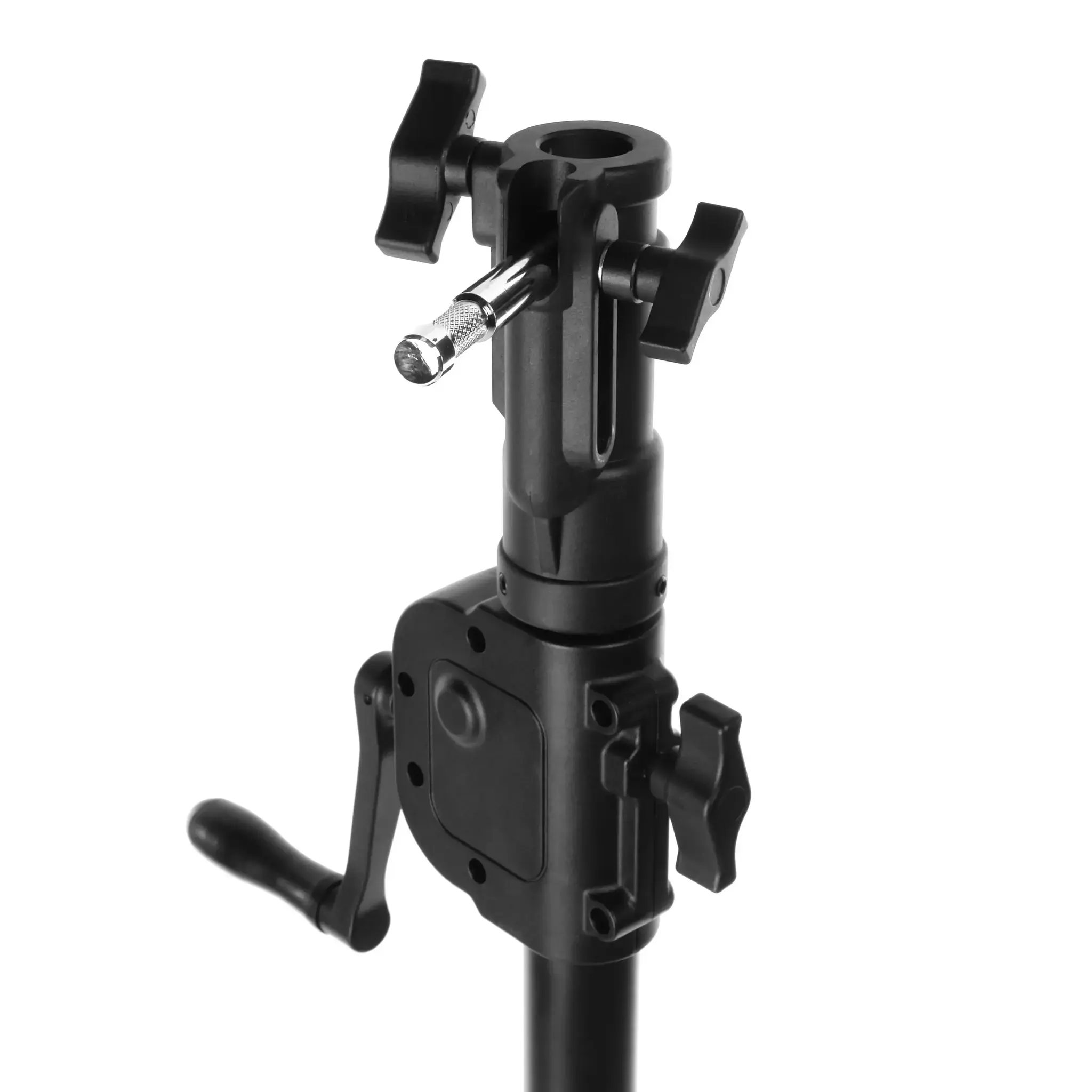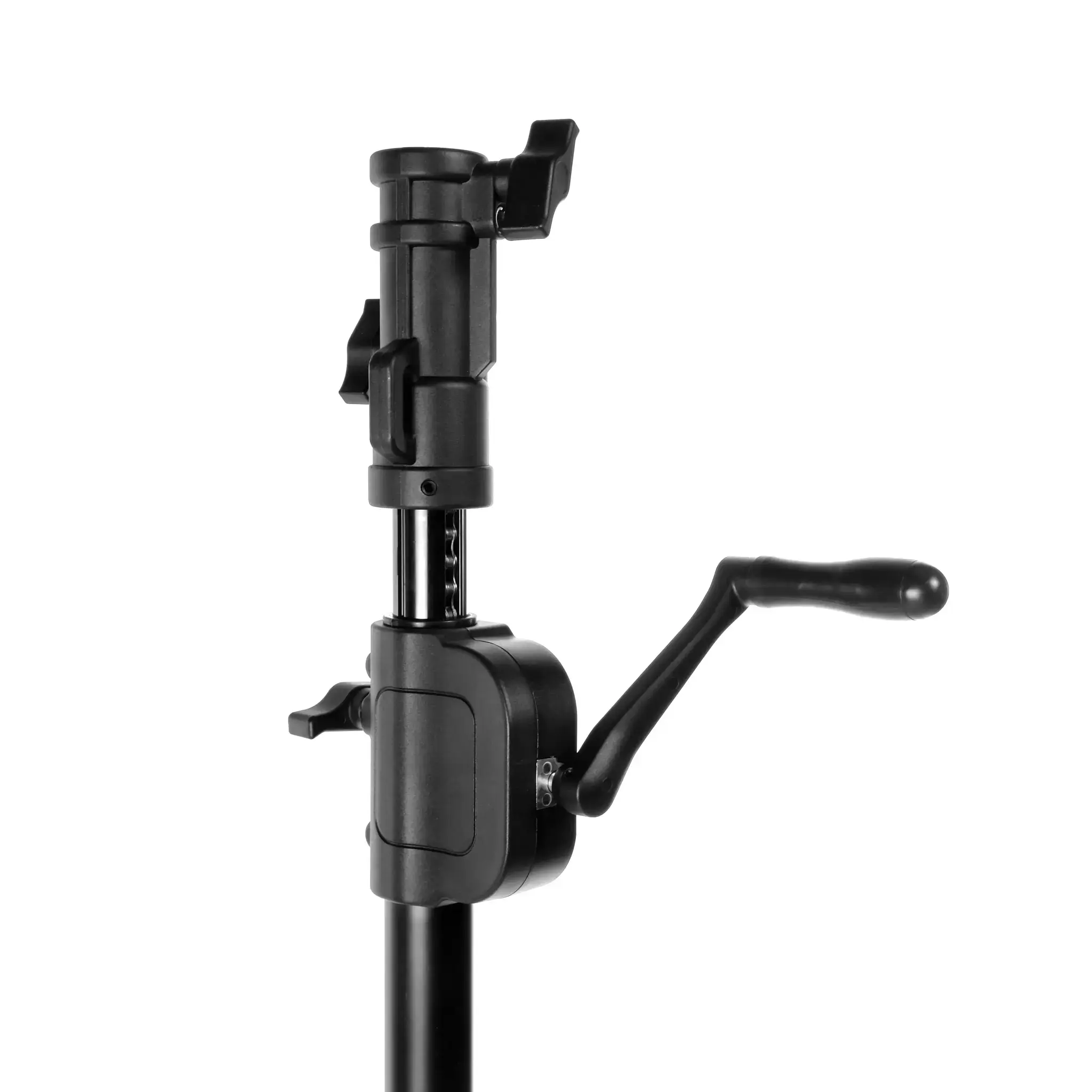 Изготовленная из высококачественной стали, напольная стойка обладает высокой прочностью и долговечностью. Черное матовое антикоррозийное покрытие на основе железа эффективно защищает металл от коррозии и увеличивает срок службы изделия. Также черный матовый цвет стойки идеально подходит для работы в студии, поскольку минимизирует блики и отражает меньше света, создавая более контролируемую съемочную среду.