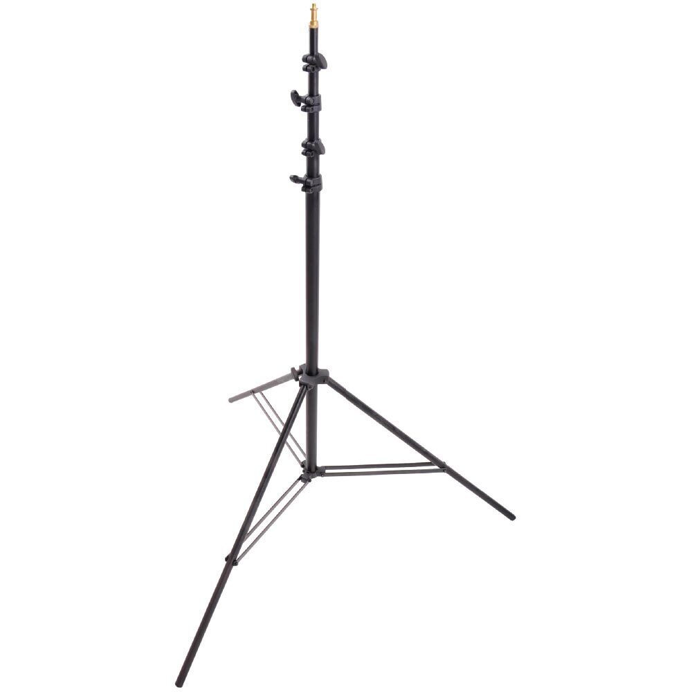 Изготовленная из прочного, но легкого алюминиевого сплава с черным анодированным покрытием, 5-секционная стойка KUPO 045 MEDIUM STAND достигает высоты 445 см и выдерживает нагрузку до 1 кг. В сложенном виде длина стойки составляет 95 см, что обеспечивает удобство при транспортировке, а широкое основание диаметром 109 см гарантирует устойчивость. Двойные распорки на каждой ножке, прикрепленные с помощью болтов и гаек, обеспечивают дополнительную надежность и облегчают обслуживание стойки. На верхней части стойки находится латунный шпигот Baby 5/8" (16 мм) с винтом 3/8" для крепления оборудования. Алюминиевые фиксаторы секций обеспечивают надежность соединения, а накладки на ножки защищают как стойку, так и поверхность, на которой она установлена.
